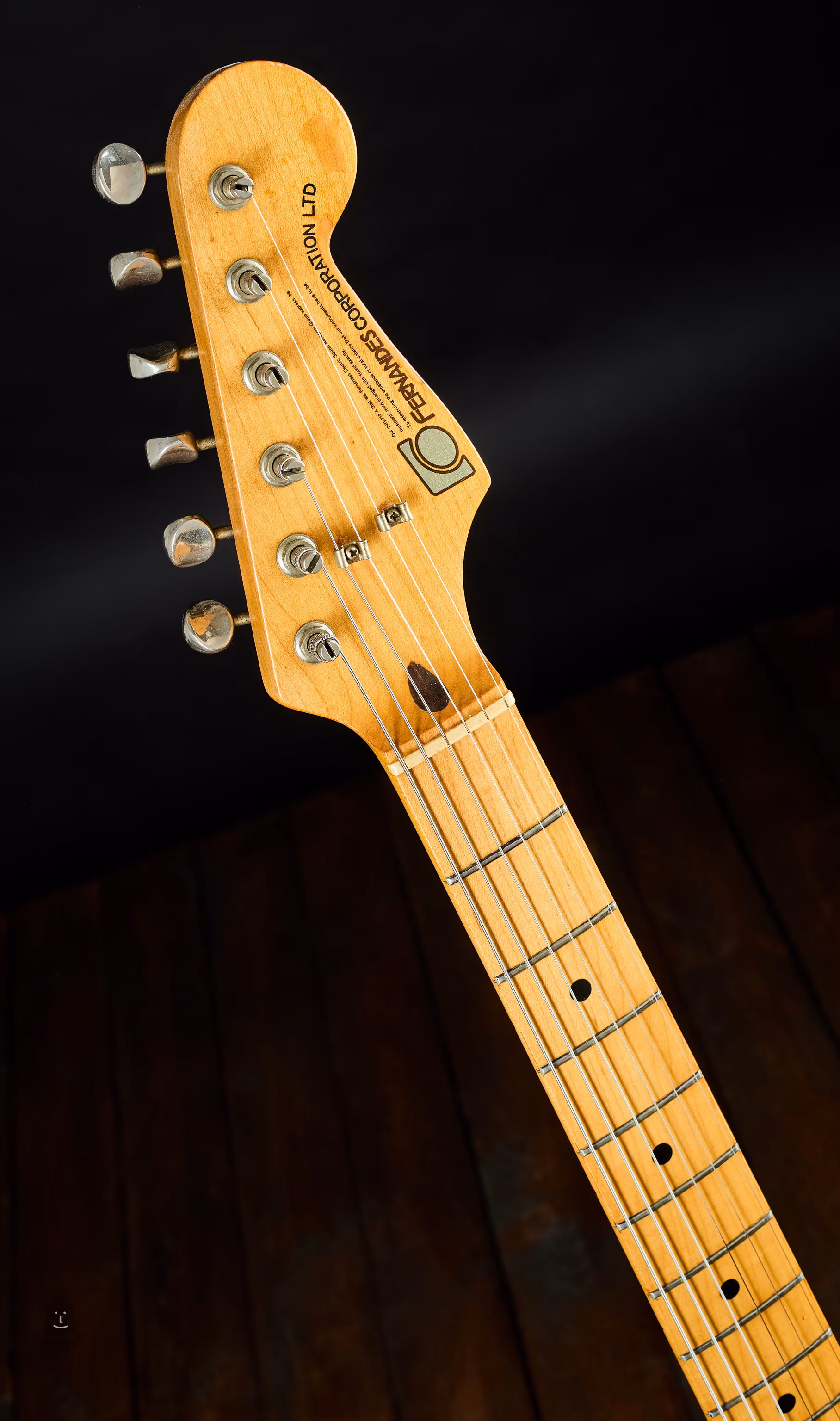 Vyšší model stratocasteru od japonského výrobce Fernandes s vyhedávaným "stone" logem. Lawsuit éra na přelomu 70. a 80. let.