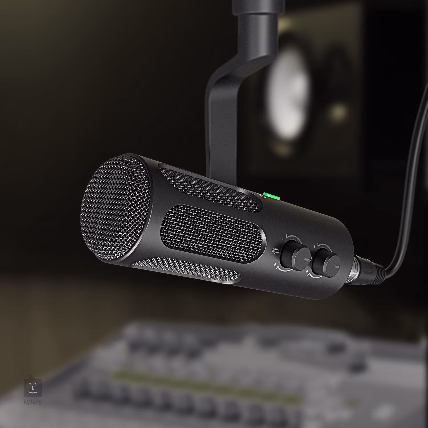 Dynamická kapsle je usazena v robustním celokovovém těle a zvuk před tvrdými souhláskami chrání vestavěný pop filter.