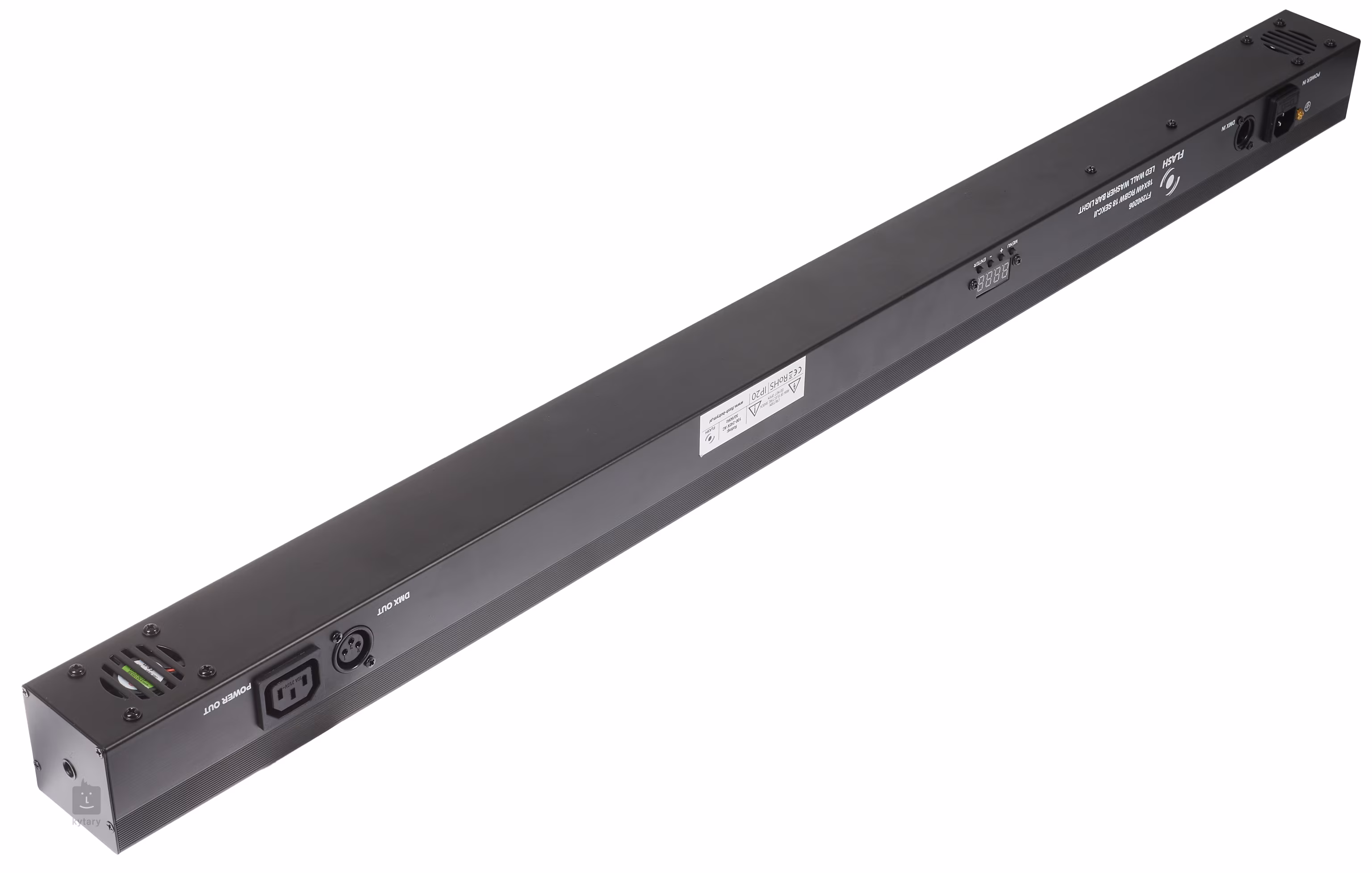 K ovládání poslouží standardní protokol DMX-512. K dispozici jsou také zvukem ovládané a automatické programy nebo režim Master/Slave. Manuální nastavení provedete prostřednictvím přehledného ovládacího panelu s displejem a tlačítky. Lišta poskytuje pouze základní IP krytí IP20, takže není vhodná pro venkovní provoz. Součástí balení je napájecí kabel a montážní součástky. Přístroj je osazen 3pinovými DMX konektory a napájecím konektorem IEC. Konstrukce lišty je vyrobena z odolného hliníku.