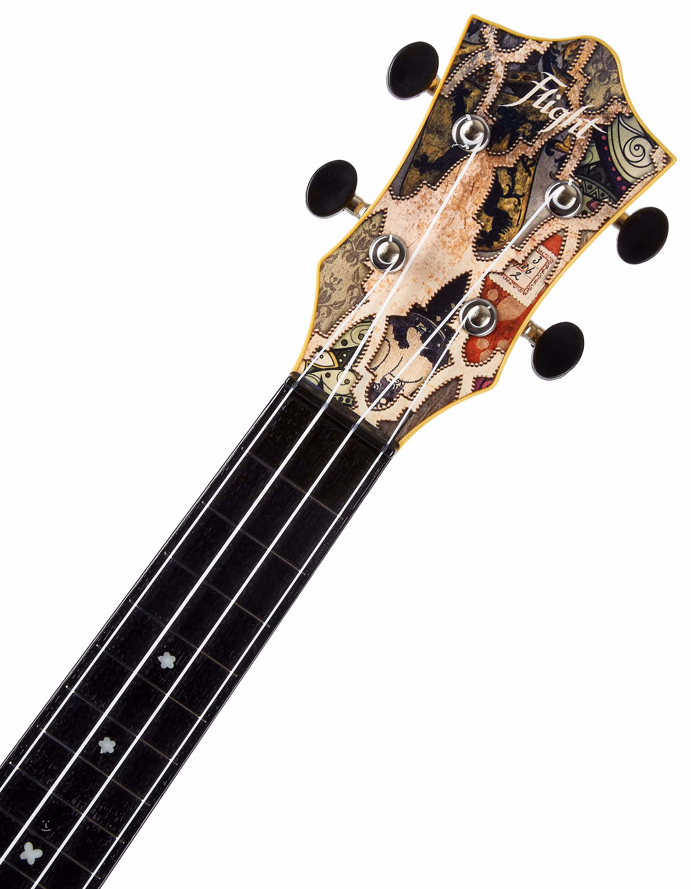 Korpus tohoto sopránového ukulele je složen z plastového těla a přední desky z laminované lípy, kterou zdobí barevné grafické motivy. Širší klenutá zadní deska ukulele umožňuje nástroji rezonovat jasnějším hlasitějším zvukem, než nabízí standardní sopránové modely. Krk i hmatník jsou rovněž zhotoveny z plastového materiálu ABS, kdy design krku imituje strukturu dřeva. Struny jsou přes plastový nultý a sedlový pražec ukotveny v ladicích mechanikách kytarového typu (Geared) a plastové kobylce. Stylový vzhled nástroje podtrhuje javorová dýha na hlavici barevně sladěná s úpravou topu.