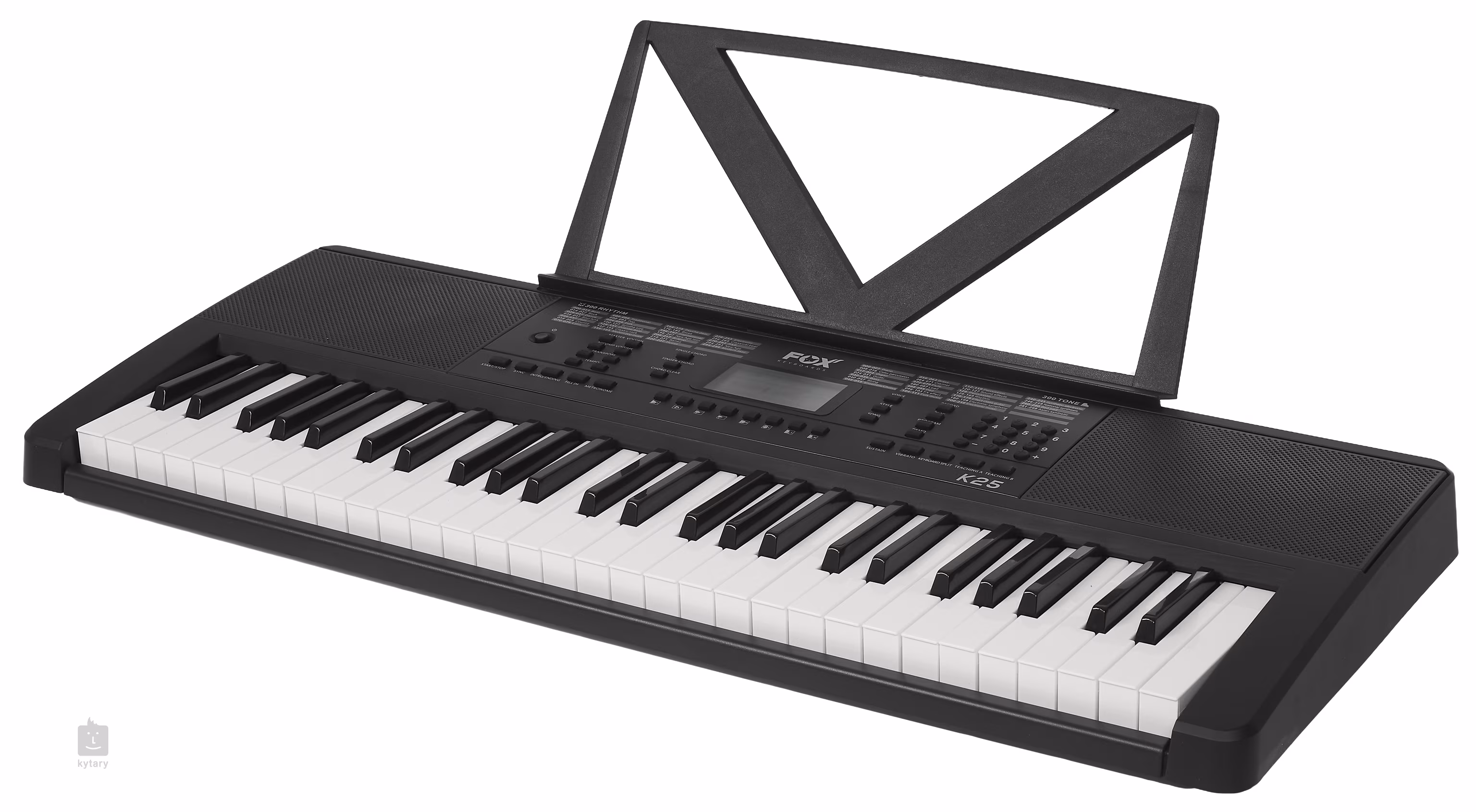 FOX K25 nabízí 54 kláves standardní velikosti s dynamikou, 300 klasických i elektronických zvuků, osm drum padů, 300 automatických doprovodů, nebo 50 demo songů. Nechybí ani pokročilé funkce jako Split (rozdělení klaviatury pro hru na dva nástroje zároveň), nebo nastavení Sustainu (dozvuku) a Vibrata. Klaviaturu lze rovněž transponovat, což ocení jak začátečníci, tak pokročilí hráči. Samozřejmostí je možnost hraní akordů jedním prstem, funkce Record pro záznam vašich pokusů nebo metronom a výukový systém. Ke klávesám je možné připojit mikrofon nebo externí zařízení s vašimi oblíbenými nahrávkami a zajamovat si tak s nimi.