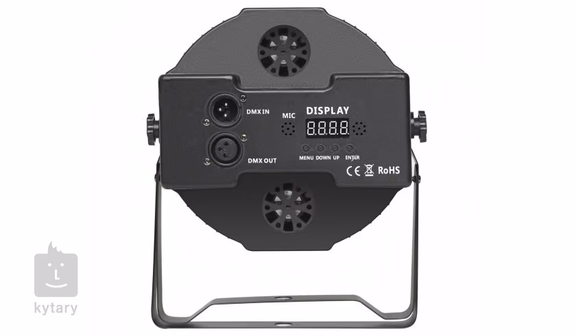 Ovládání je zajištěno pomocí standardního protokolu DMX512, případně s využitím automatických či zvukem ovládaných programů. K dispozici je režim Master/Slave, s jehož pomocí můžete propojit více jednotek dohromady a bez problému je synchronizovat. Pro manuální nastavení využijete přehledný ovládací panel s displejem a tlačítky. Přístroj je osazen 3pinovými DMX konektory. Součástí balení je napájecí kabel.
