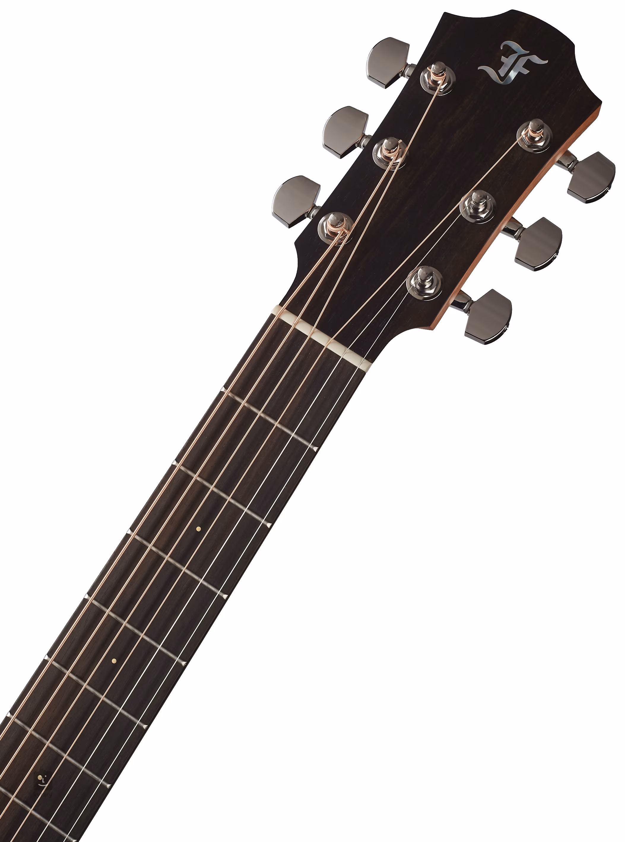 Orientaci na ebenovém hmatníku usnadňují boční a čelní bodové poziční značky. Pražce se zkrácenými nožičkami záměrně nesahají až k hranám hmatníku - nedochází tak k jejich vylézání způsobenému sesycháním hmatníku při nižší vlhkosti vzduchu. Přesné a stabilní ladění zaručují chromované firemní mechaniky s převodovým poměrem 1:18. Pěkné zpracování podtrhuje lemovka a pickguard z imitace želvoviny a rozeta s výložkou z ořechu.
