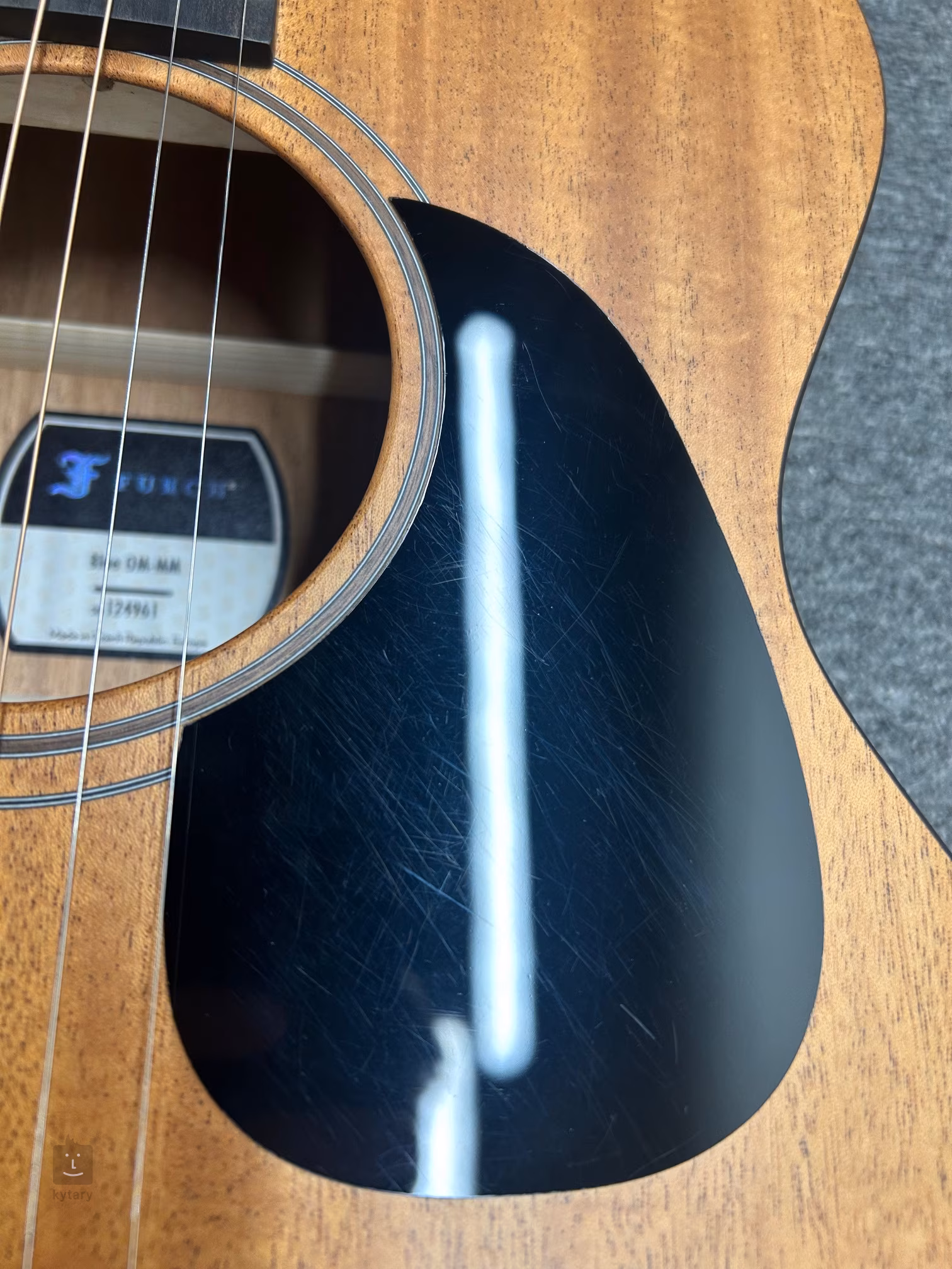 Pěkné zpracování kytar Furch Blue podtrhuje lemovka a pickguard z imitace želvoviny a zdobná rozeta s výložkou z černého ořechu. Pickguard je nově doplněn o transparentní prodloužení směrem k akustickému otvoru, účinněji tak chrání přední desku, aniž by narušoval design rozety. Orientaci na ebenovém hmatníku usnadňují boční a čelní bodové poziční značky. Přesné a stabilní ladění zaručují chromované firemní mechaniky s převodovým poměrem 1:18.