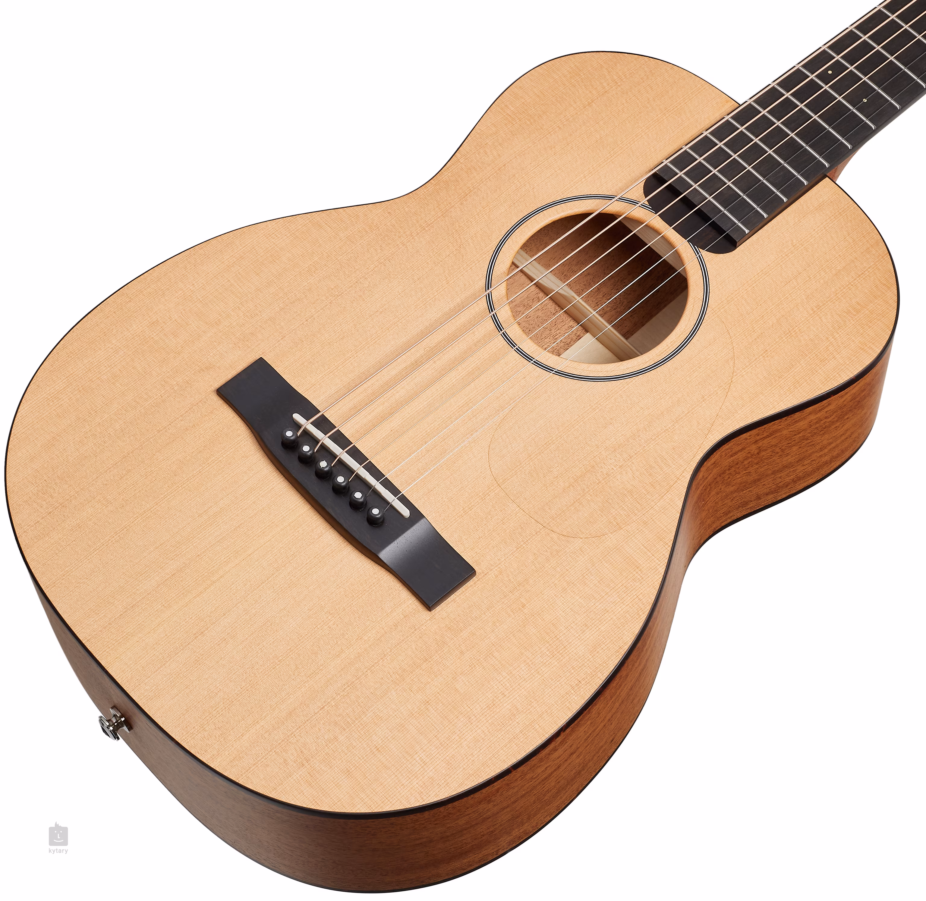 Přední deska cestovní akustické kytary Little Jane LJ 10-CM je zhotovena z masivu červeného cedru, luby a zadní deska jsou zhotoveny z masivu afrického mahagonu. Akustické vlastnosti nástroje vynáší nejvyšší možnou úroveň individuální ladění přední rezonanční desky, open-pore finiš podporuje přirozené zvukové charakteristiky použitého dřeva a poskytuje vynikající úroveň povrchové ochrany.