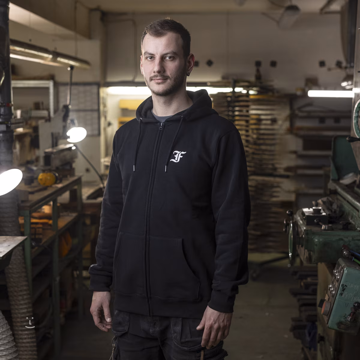 Mikina s kapucí Sweatjacket zip značky Furch. Tkanina složená z 65 procent z bavlny a ze 35 procent z polyesteru zaručuje, že bude mikina držet tvar a nebude se vytahovat. Minimalistický unisex design s trademark “6 Strings” grafikou nabízí spojení jednoduchosti, stylu a pohodlí. Výrobce doporučuje před prvním nošením mikinu vyprat.