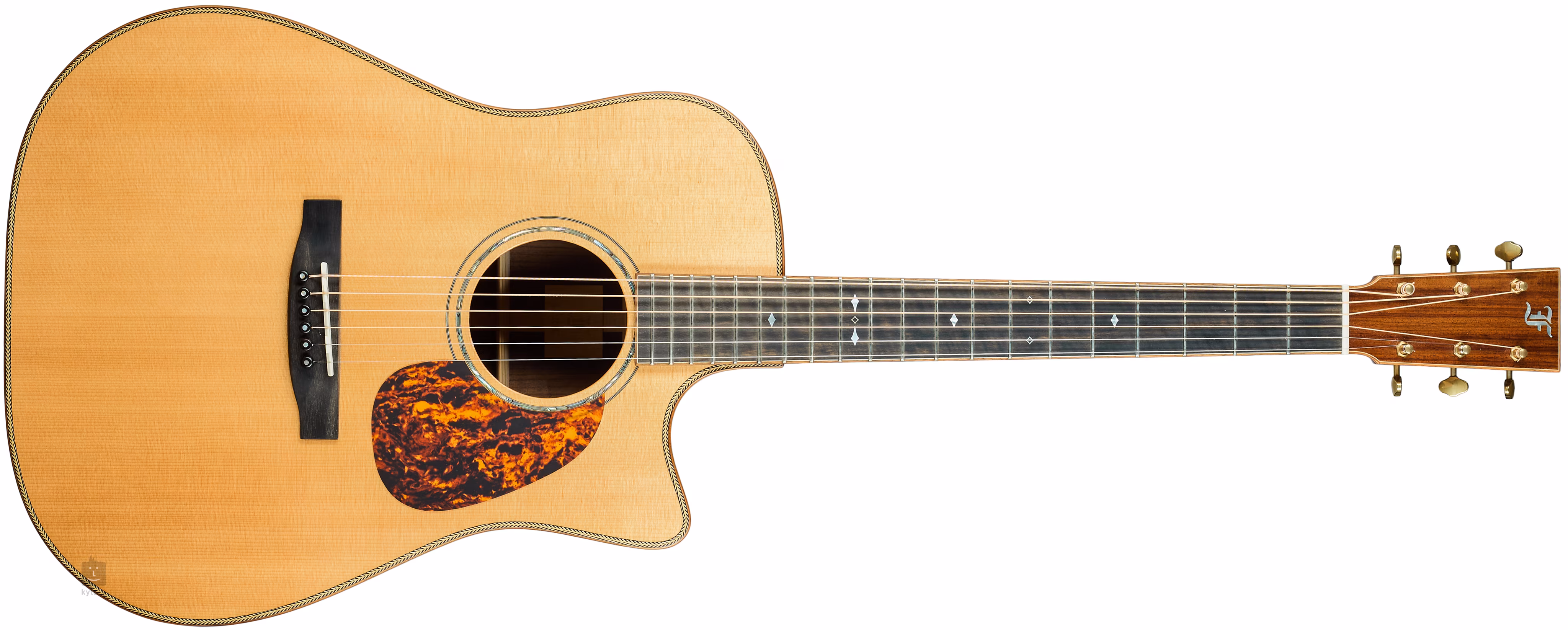 Orientaci na ebenovém hmatníku usnadňují kvadratické polohové značky z bílé perleti. Stabilní ladění zaručují špičkové mechaniky Gotoh SE700 v odstínu zlaté patiny s převodovým poměrem 1:15. Atraktivní vzhled kytary podtrhuje řada stylový ozdobných detailů v podobě lemování těla, hlavy a hmatníku z koy s kontrastní linkou, jež vkusně doplňuje dekorace přední desky s motivem rybí kosti, rozety tvořené dvojitým prstencem s vykládáním ze zeleného abalonu s černobílou linkou nebo plátku na hlavě z madagaskarského palisandru.
