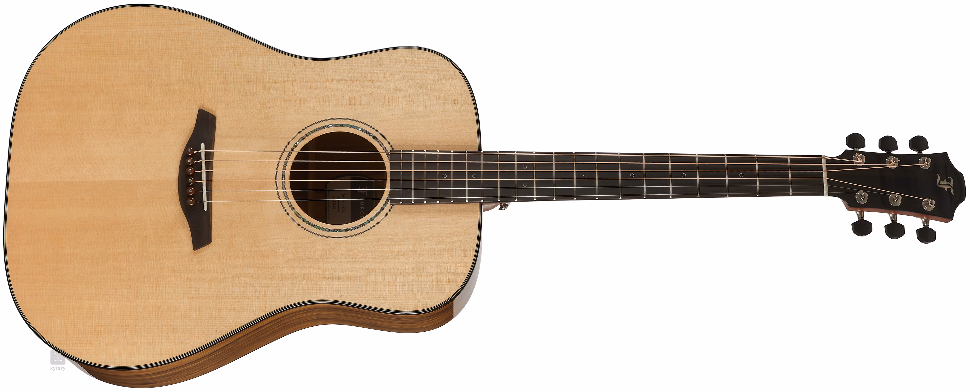 Orientaci na ebenovém hmatníku usnadňují elegantní čelní kruhové poziční značky s tenkou obrysovou linkou z bílé perleti a boční perleťové bodové značky. Transparentní pickguard nechává vyniknout přirozené kresbě dřeva a zároveň neovlivňuje rezonanci přední desky. Stabilní ladění zaručují špičkové mechaniky Gotoh 510 ve stříbrné patině s leštěnými ebenovými kolíčky a vysoce jemným převodovým poměrem 1:21. Pěkné zpracování podtrhují jemné detaily v podobě lemování těla z umělé želvoviny a dvojité prstencové rozety s vykládáním ze zeleného abalonu s černobílou linkou.