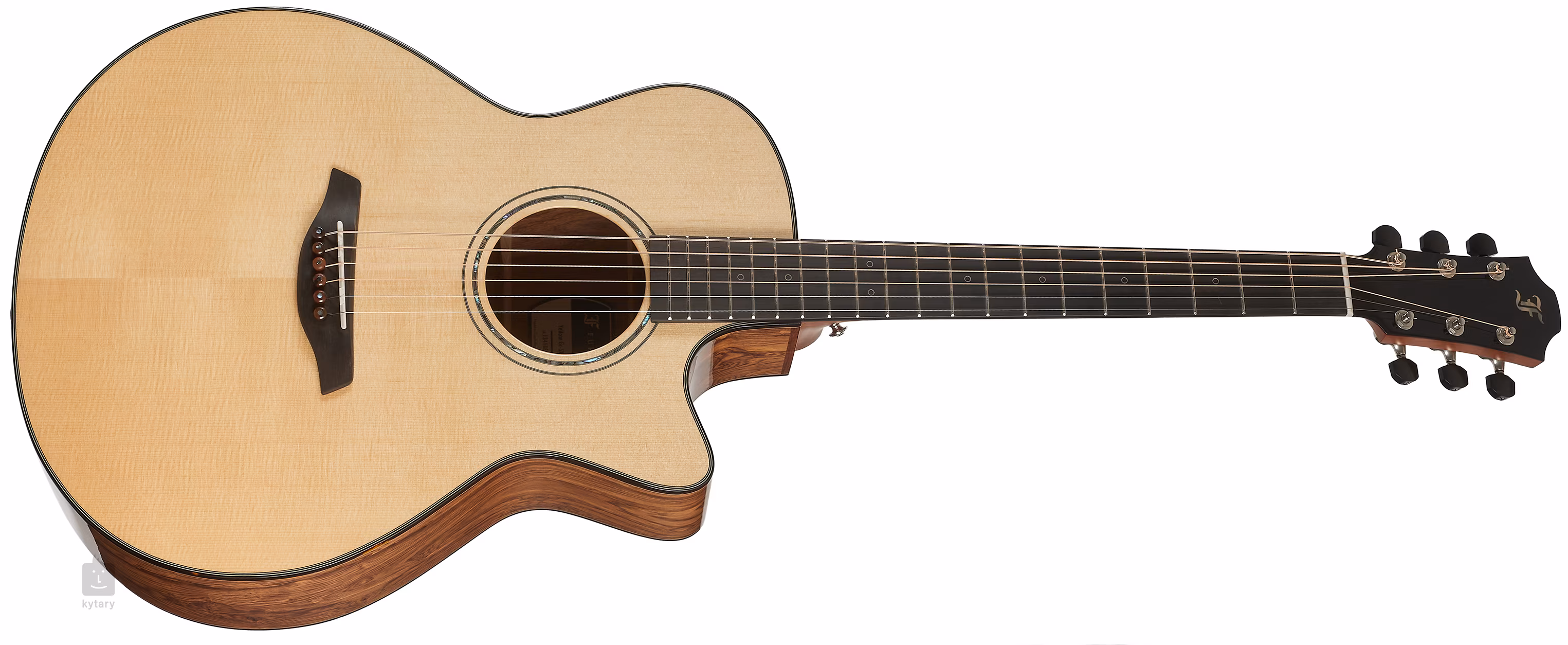Orientaci na ebenovém hmatníku usnadňují elegantní čelní kruhové poziční značky s tenkou obrysovou linkou z bílé perleti a boční perleťové bodové značky. Transparentní pickguard nechává vyniknout přirozené kresbě dřeva a zároveň neovlivňuje rezonanci přední desky. Stabilní ladění zaručují špičkové mechaniky Gotoh 510 ve stříbrné patině s leštěnými ebenovými kolíčky a vysoce jemným převodovým poměrem 1:21. Pěkné zpracování podtrhují jemné detaily v podobě lemování těla z umělé želvoviny a dvojité prstencové rozety s vykládáním ze zeleného abalonu s černobílou linkou.