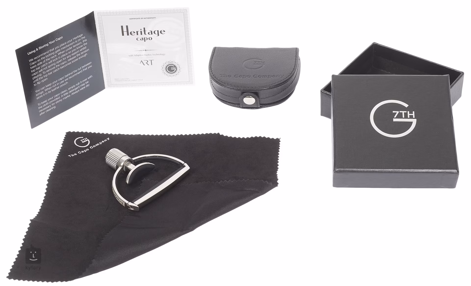 Kapodastry Heritage v sobě spojují tradici s inovativními přístupy. Jejich konstrukce z ručně leštěné nerezové oceli disponuje technologií A. R. T., tj. Adaptive Radius Technology, díky které se kapodastr přizpůsobí nástrojům s libovolnou tloušťkou a profilem krku. Části přicházející do styku s krkem kytary jsou opatřeny silikonovou pogumovanou vložkou a zabraňují tak poškození. Výsledkem je vždy čistý, vřelý tón bez jakýchkoliv nežádoucích zvukových ruchů a stabilní ladění. Součástí balení je kožený váček, čistící hadřík a dárkový box.