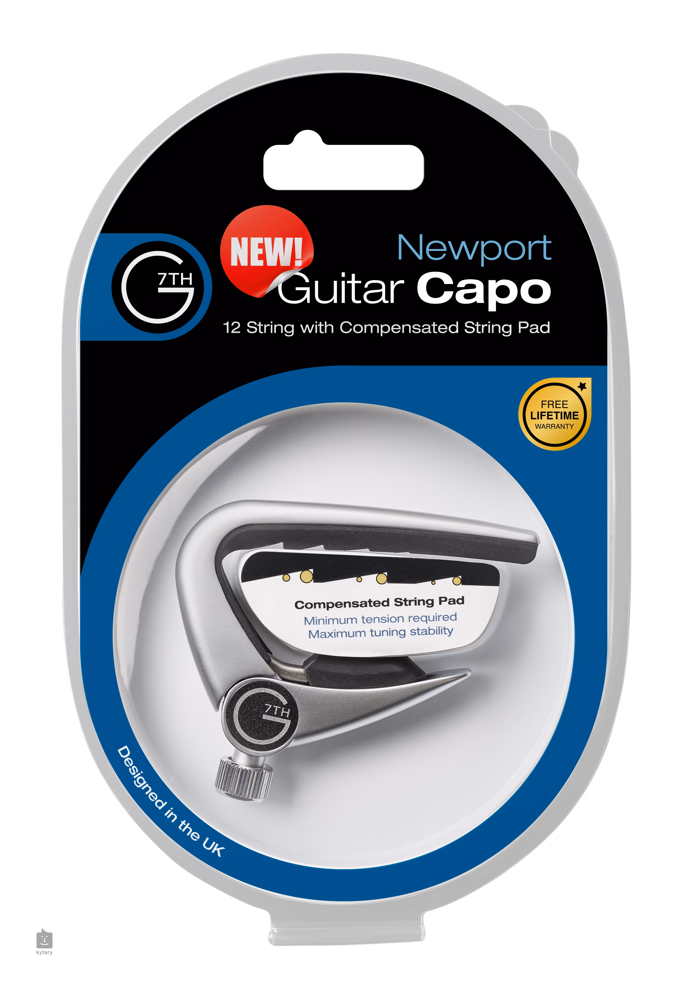 Řada kapodastrů Newport od firmy G7th si získala popularitu mezi kytaristy pro svou spolehlivost, nízkou váhu a nenápadný profil, díky kterému si jej na kytaře téměř nevšimnete. Tento inovovaný model zachovává veškeré výhody původního kapodastru a navíc přichází s technologií Compensated String Pad, která zajišťuje vyrovnanější přítlak na každou ze strun pro docílení stabilnějšího ladění. Samozřejmostí zůstává také individuální nastavení přítlaku otočným šroubem podle typu vašeho nástroje.