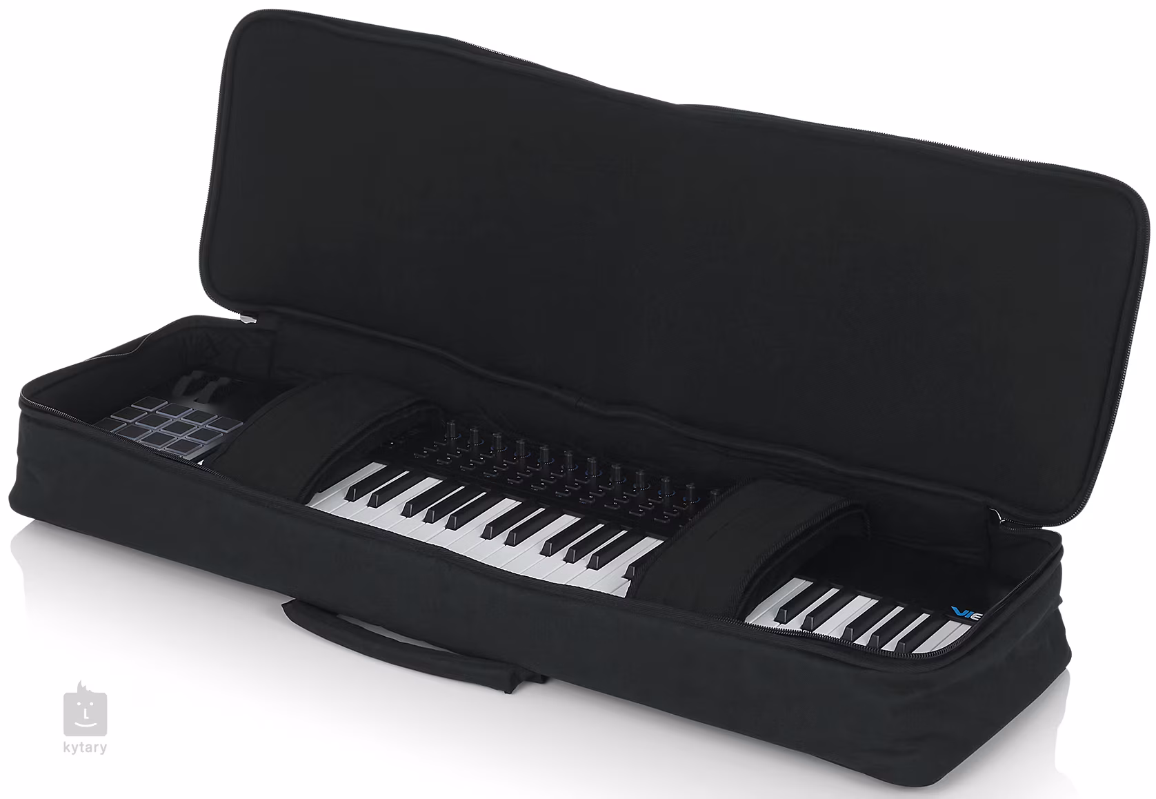 Gator GKB-61 SLIM je přepravní obal ideální pro klávesové nástroje s 61 klávesami standardní velikosti. Odolná nylonová konstrukce zahrnuje nastavitelné polstrované bezpečnostní popruhy pro vnitřní fixaci nástroje během přepravy. Nechybí vnější kapsa na příslušenství a zesílené pohodlné nýtované rukojeti pro přenášení.
