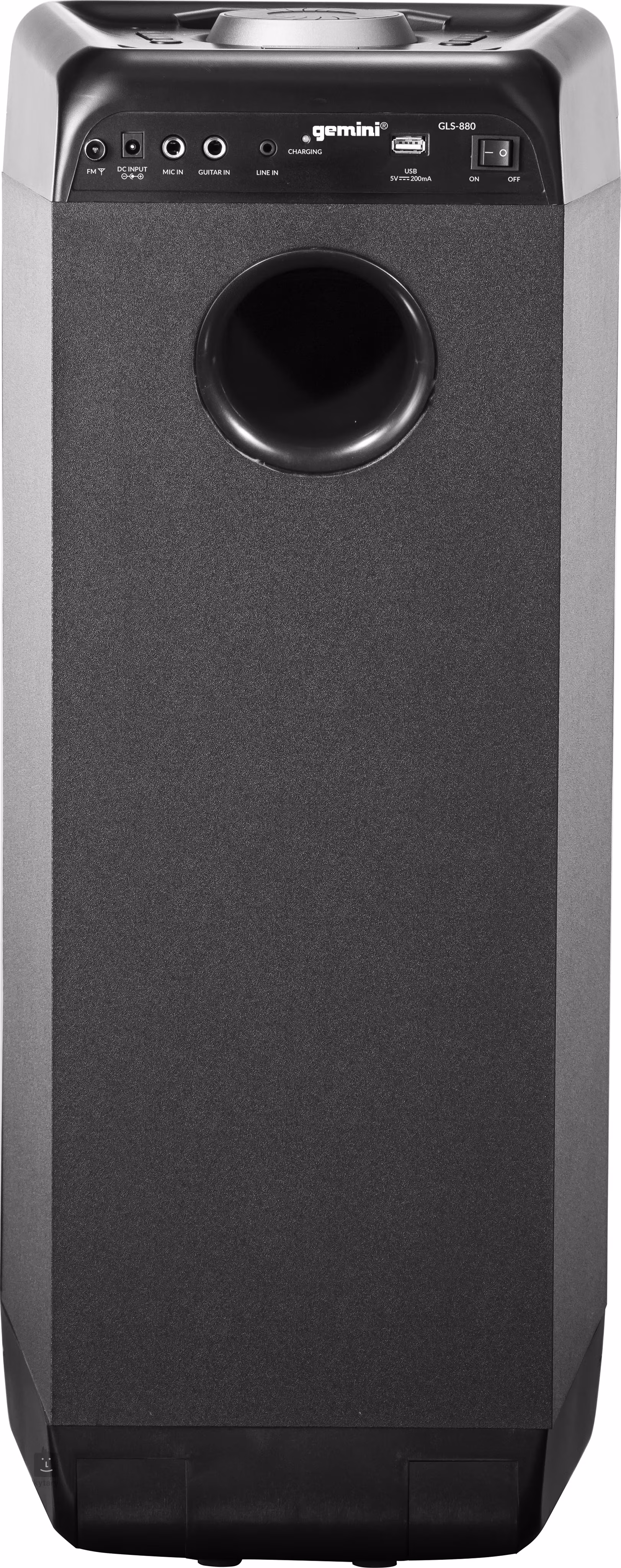 GLS-880 od společnosti Gemini je výkonný přenosný party systém, který přináší až 1000 W špičkového výkonu a díky vestavěné dobíjecí baterii zajistí hodiny zábavy kdekoliv na cestách. Disponuje dvěma 8" woofery a 1" tweeterem, které společně zajišťují bohatý basový základ i čisté výšky. Integrovaný multimediální přehrávač umožňuje přehrávání hudby přes Bluetooth, FM rádio nebo USB.