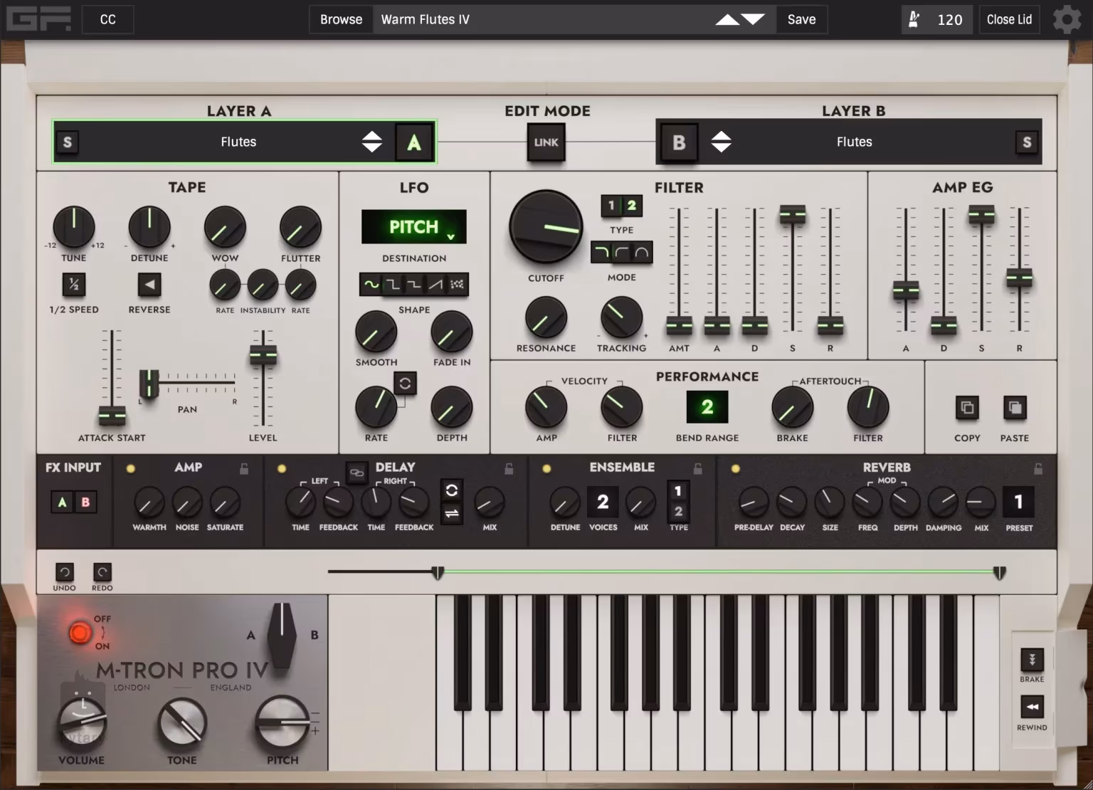 Zvuková knihovna o velikosti 12,5 GB s 525+ páskovými bankami, 3700+ presety a okamžitými klasickými zvuky pro vaši produkci obsahuje originální zvuky z Chamberlinu, Optiganu, Orchestronu a některé z nejvzácnějších zvuků Mellotronu, které kdy byly nahrány. Rozšiřující balíčky Streetly Expansion Packs pocházejí z originálních master pásků, které byly pečlivě nahrány notu po notě, pečlivě vybrány a poté upraveny.