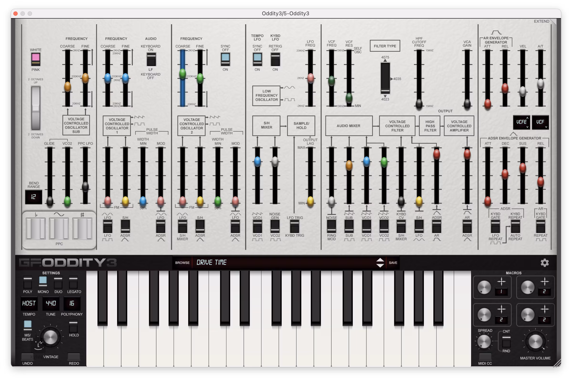 Autentické modely všech tří původních filtrů, dva synchronizovatelné oscilátory, přesná rekonstrukce legendárního kruhového modulátoru, obálky AR a ADSR a mnoho dalšího - to vše bylo pečlivě namodelováno tak, aby Oddity3 stále poskytoval věrnou a přesnou rekonstrukci jednoho z nejuctívanějších syntezátorů vůbec.
