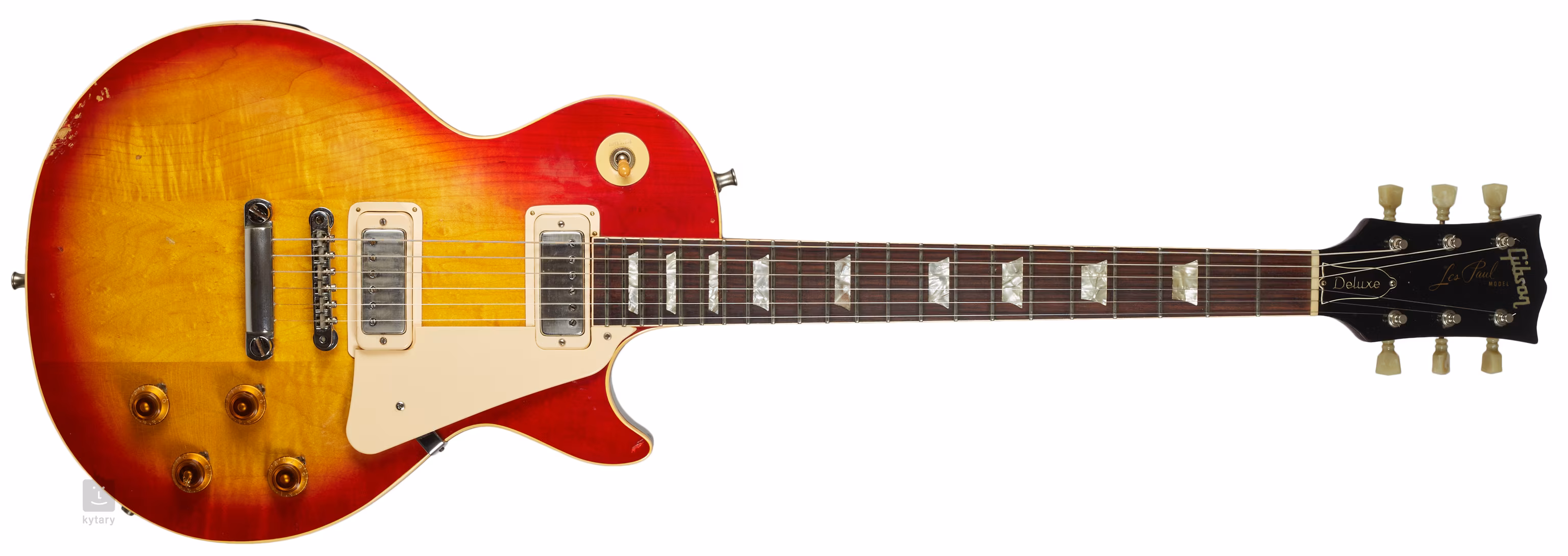 Model Deluxe je ikonou 70. let. Přímo tento kus byl vyroben v roce 1971 a nabízí dlouhý dozvuk, barevný tón a pocit opravdového vintage nástroje. Speciální snímače typu minihumbucker nabídnou víc výšek a o trochu světlejší zvuk oproti běžným humbuckerům.