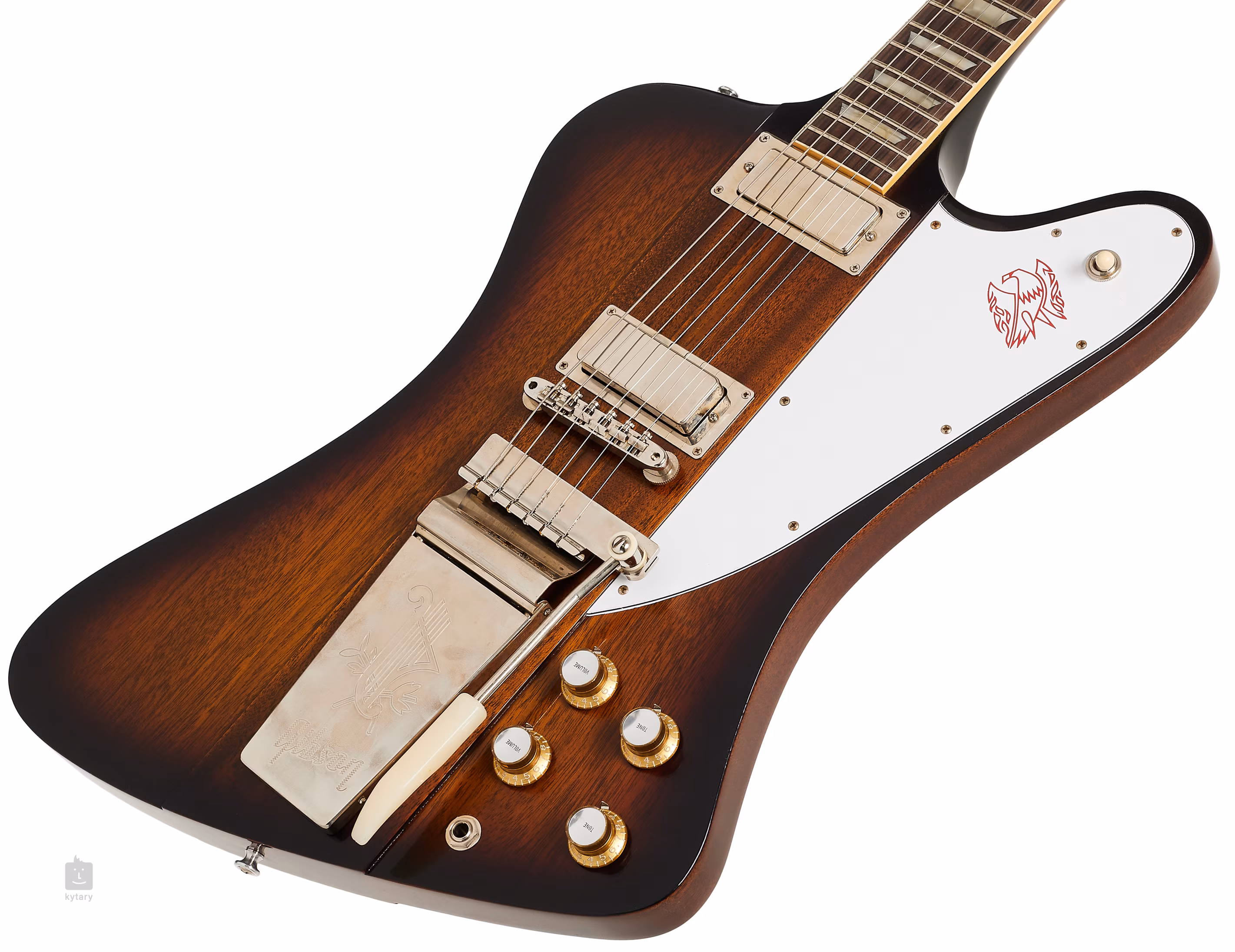 Elektrické kytary Gibson Firebird si díky jejich unikátnímu tvaru inspirovaným designem automobilů z 60. let nespletete. 1963 Firebird V w/ Maestro Vibrola VOS Vintage Sunburst je historicky autentický „reissue“ model z dílen Gibson Custom Shopu, který se vrací k designu z roku 1963.