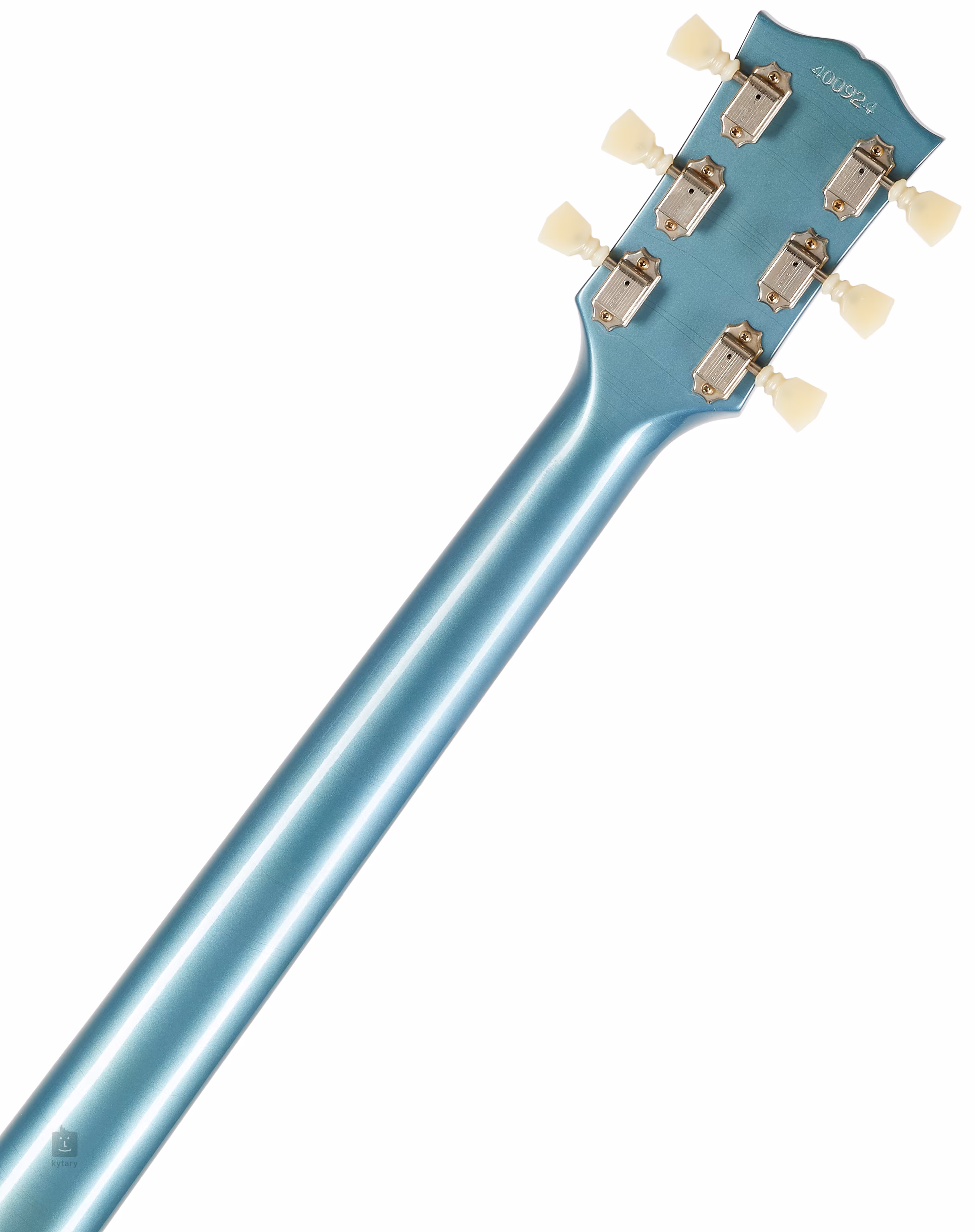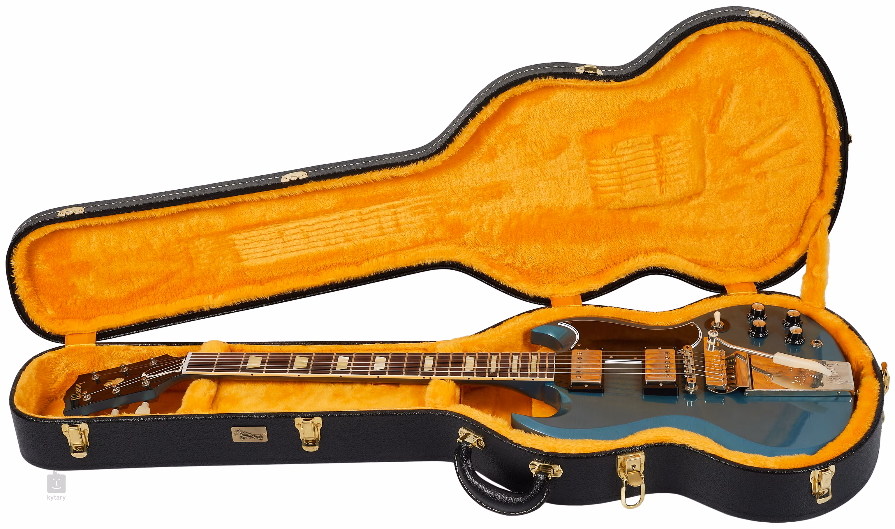 CS 1964 SG Standard Reissue w/ Maestro Ultra Light Aged Pelham Blue není jen poctou, ale doslova o klonem originálu - od původních konstrukčních metod, replik elektroniky nebo plastových částí, každý prvek je zachycen v maximálním detailu. Finiš The Murphy Lab Ultra Light Aged spolu s “lightly aged” provedením hardware simulují dekády občasného hraní a lehkého opotřebení, poskytují tak kytaře unikátní charakter a feel originálů ze zlaté éry elektrických kytar Gibson.