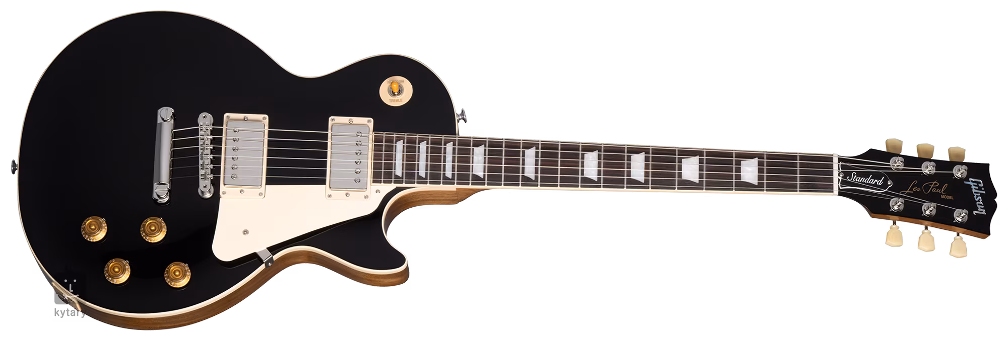 Kytara Les Paul Standard 50s Plain Ebony Top nabízí mahagonové tělo a javorový top, který zdobí lesklý lak a barevná úprava Ebony. K mahagonovému krku se zakulaceným profilem Vintage 50s je přilepen hmatník z indického palisandru osazený dvaadvaceti pražci velikosti Medium Jumbo. Orientaci na hmatníku usnadňují polohové bloky z imitace perleti (Acrylic Trapezoid).