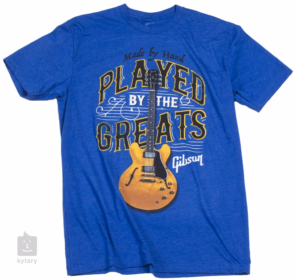 Unisex tričko s potiskem „Made by Hand, Played by the Greats“, které odkazuje k tradiční ruční výrobě a k faktu, že na kytary Gibson hrály ty největší ikony. Použitý materiál je v poměru 60% bavlna, 40% polyester.