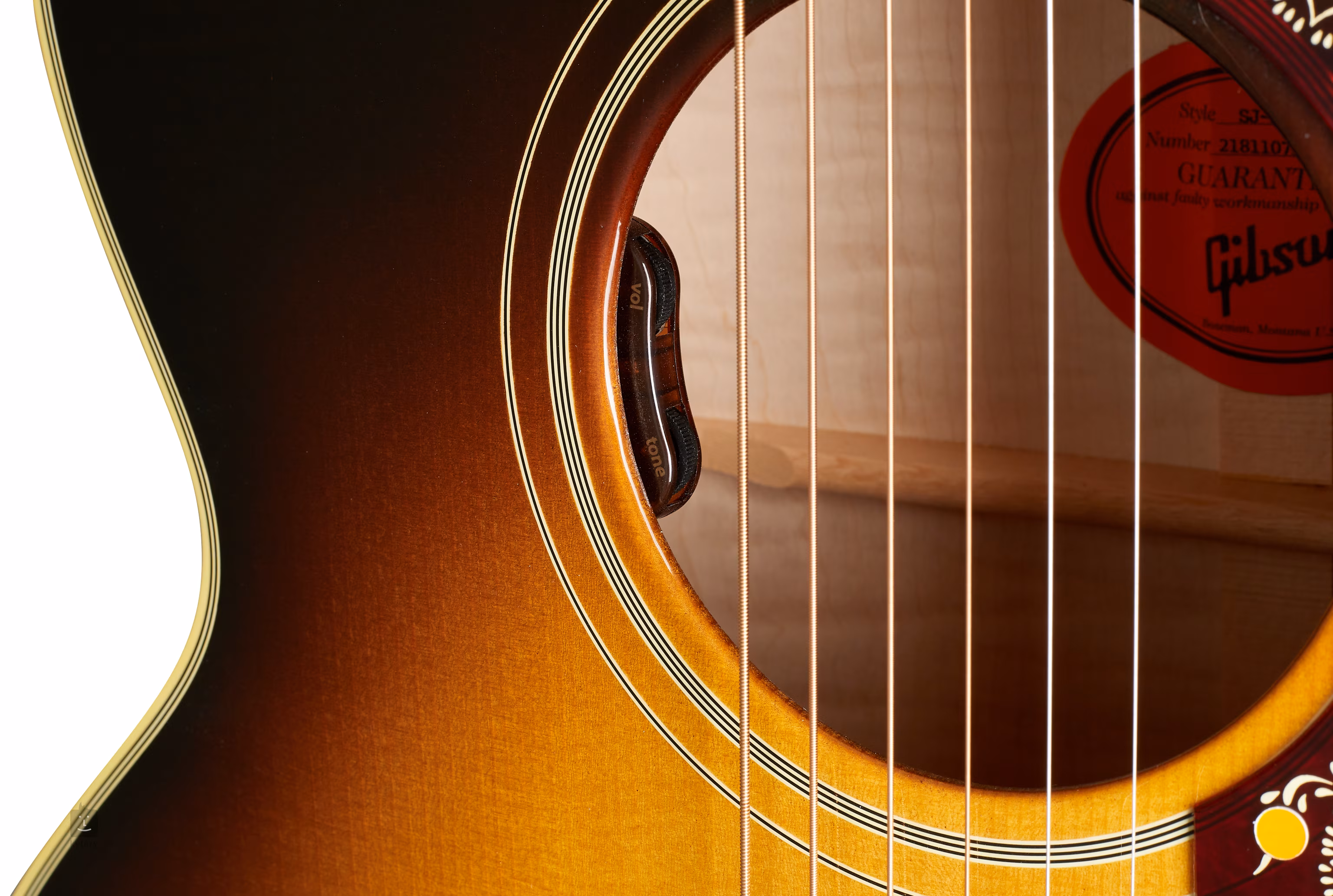 Struny jsou přes nultý a sedlový pražec z kosti uchyceny v ladících mechanikách Gotoh Keystone a palisandrové kobylce ve tvaru kníru (Moustache) vyložené perleťovými bloky. Stylové zpracování podtrhuje vícevrstvá oboustranná obvodová lemovka těla, hardware ve zlatém provedení a zdobný „SJ-200“ pickguard.