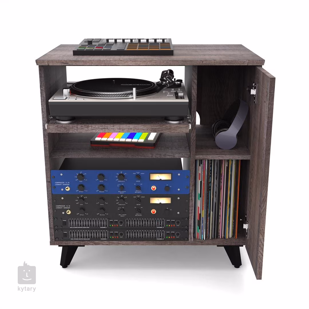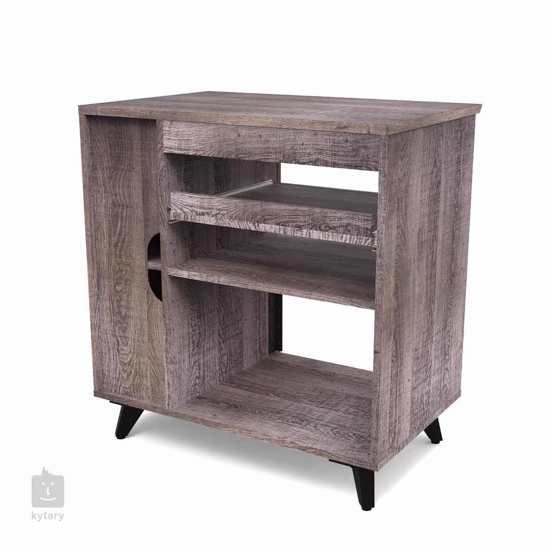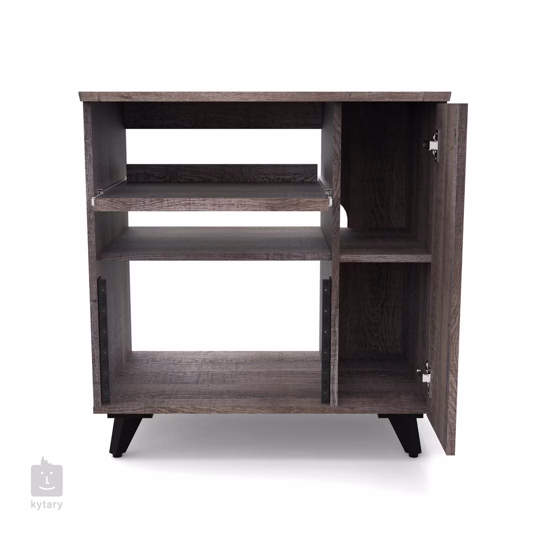 Žádná dvě nahrávací studia nejsou stejná, a proto byl Glorious Modular Side Rack navržen s ohledem na maximální flexibilitu. Tento stylový studiový nábytek představuje variabilní regál rozdělený na dvě hlavní části, který perfektně doplní výrobky řady Soud Desk a Wokbench. Větší (levou) část tvoří rackový prostor (až 12U), který lze z části využít pro instalaci dvou policových dílů, z nichž jeden je opatřen praktickým výsuvným mechanismem. Oba díly lze výškově nastavit nebo zvolit pouze jeden (či žádný) a upřednostnit tak prostor zejména pro rackové jednotky. To, jak si rozložení navrhnete pak přímo určuje možnosti uspořádání vašeho vybavení, kdy na pevný policový díl umístíte zařízení, ke kterému nepotřebujete trvalý přístup, zatímco výsuvnou podložku využijete např. pro kontrolery, drum machines, klávesnici nebo třeba gramofon. Pravou část komody tvoří užší dvířky uzavíratelný prostor, který je zamýšlen buď pro uložení LP desek či umístění počítače. Menší polička poslouží pro odkládání příslušenství (např. sluchátka). Horní deska je pak k dispozici pro další potřeby.