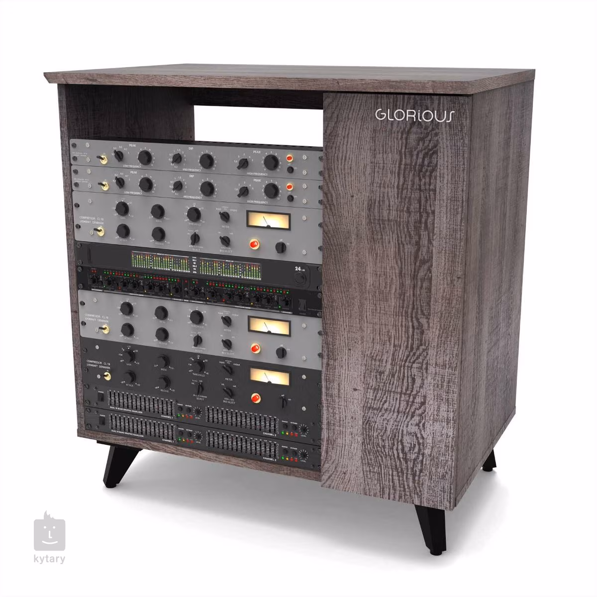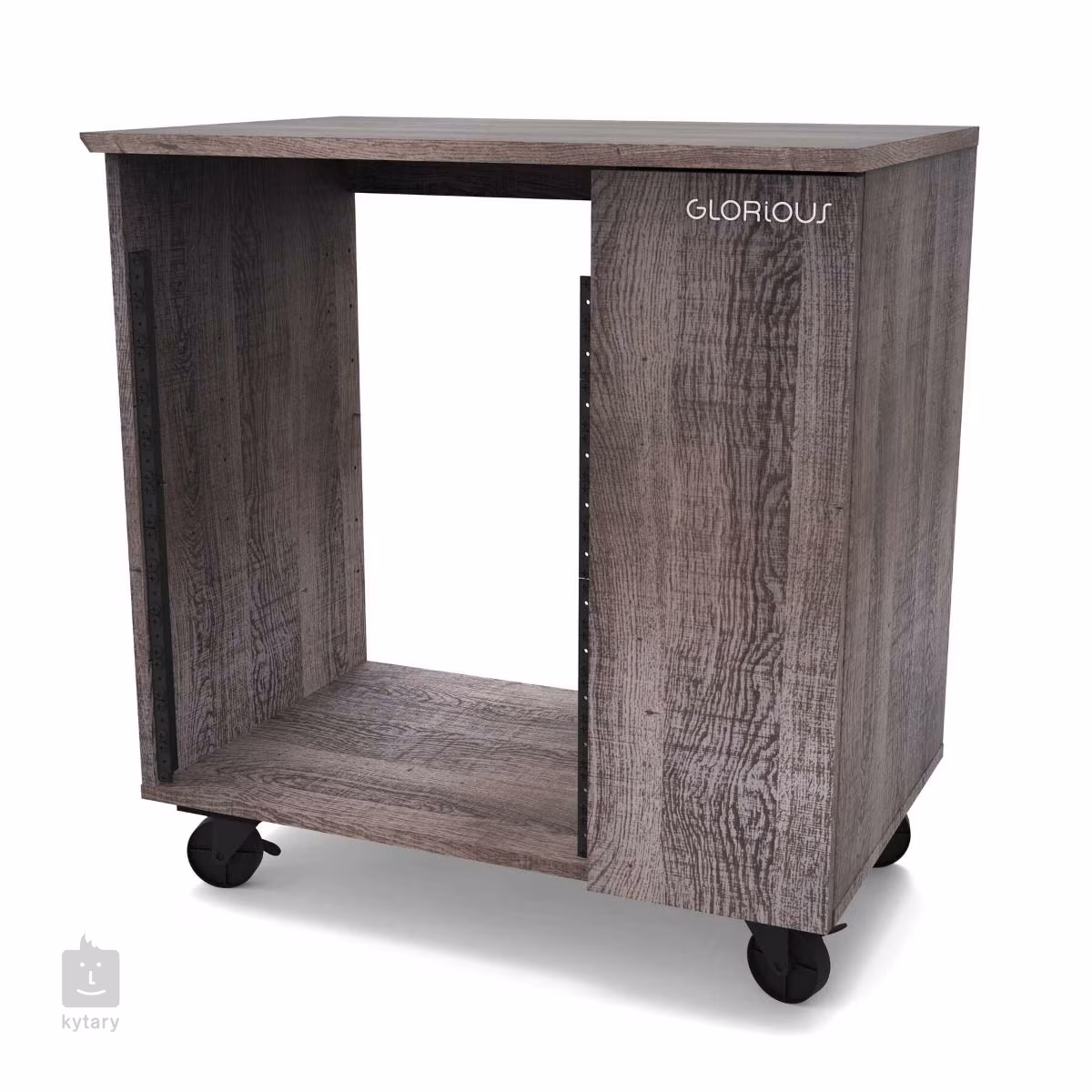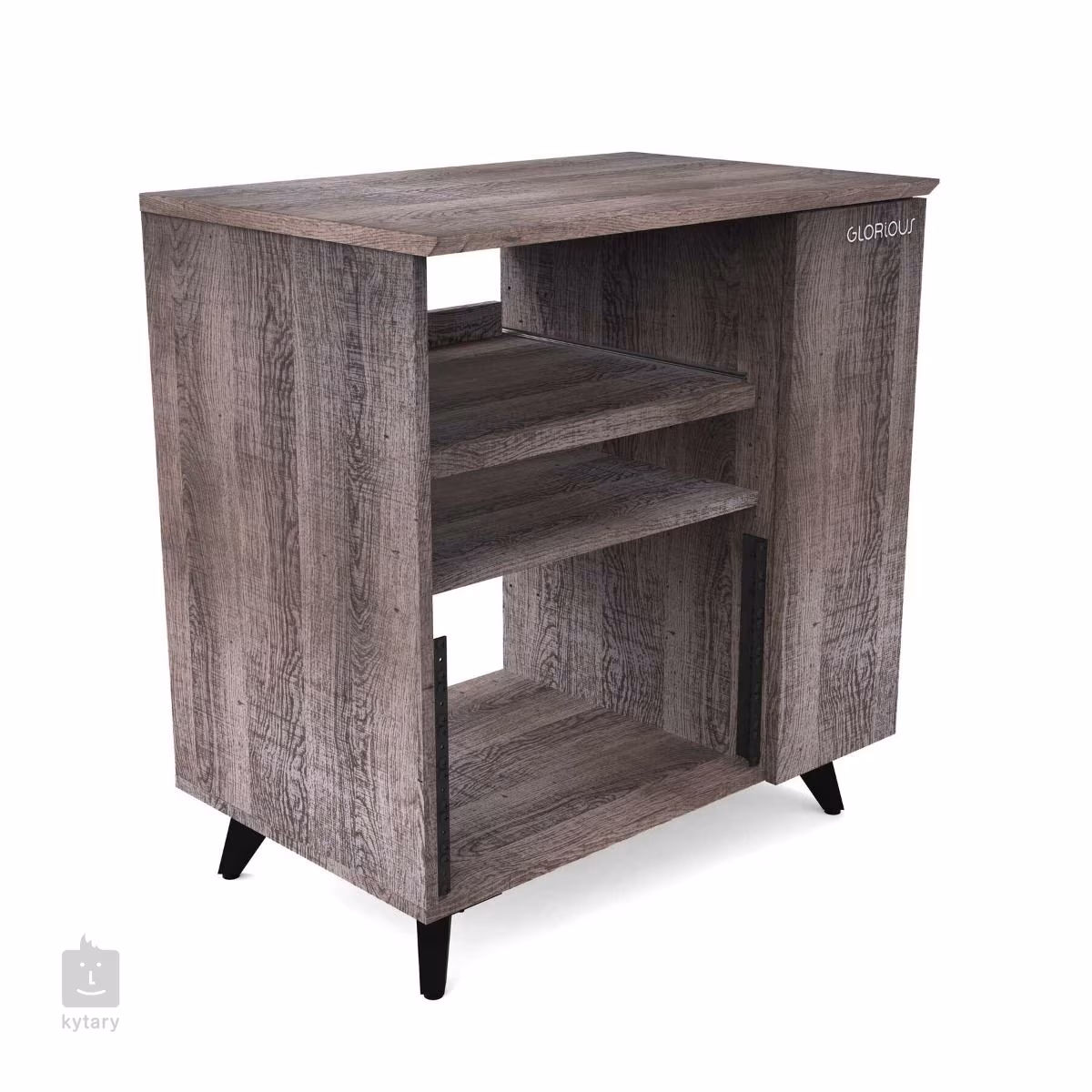 Žádná dvě nahrávací studia nejsou stejná, a proto byl Glorious Modular Side Rack navržen s ohledem na maximální flexibilitu. Tento stylový studiový nábytek představuje variabilní regál rozdělený na dvě hlavní části, který perfektně doplní výrobky řady Soud Desk a Wokbench. Větší (levou) část tvoří rackový prostor (až 12U), který lze z části využít pro instalaci dvou policových dílů, z nichž jeden je opatřen praktickým výsuvným mechanismem. Oba díly lze výškově nastavit nebo zvolit pouze jeden (či žádný) a upřednostnit tak prostor zejména pro rackové jednotky. To, jak si rozložení navrhnete pak přímo určuje možnosti uspořádání vašeho vybavení, kdy na pevný policový díl umístíte zařízení, ke kterému nepotřebujete trvalý přístup, zatímco výsuvnou podložku využijete např. pro kontrolery, drum machines, klávesnici nebo třeba gramofon. Pravou část komody tvoří užší dvířky uzavíratelný prostor, který je zamýšlen buď pro uložení LP desek či umístění počítače. Menší polička poslouží pro odkládání příslušenství (např. sluchátka). Horní deska je pak k dispozici pro další potřeby.