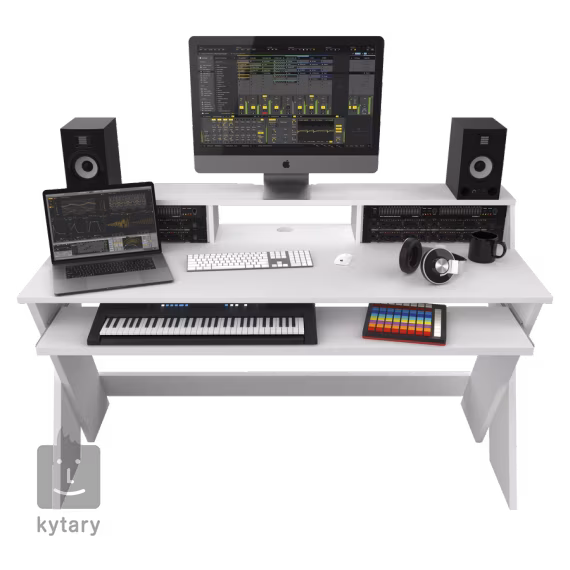 Stylový dřevěný stůl Sound Desk Pro je vhodný do nahrávacích studií a do interiérů, kde hudební producenti, skladatelé a DJ potřebují mít vše po ruce. Tříúrovňový stůl obsahuje vysouvací plochu pro klávesy, klávesnici a další zařízení. Hlavní deska disponuje rozsáhlou plochou, kam s přehledem umístíte laptop, sluchátka a hrnek s kávou. Podstavec pod monitor a reproduktory vám potom umožní skvělý monitoring vašich nahrávek a maximální přehled o jednotlivých stopách. Navíc podstavec obsahuje dvě zásuvky pro 19" rackové zařízení. Sound Desk Pro je k dostání ve třech barevných variantách, proto se skvěle hodí do vašeho moderně vybaveného nahrávacího studia.