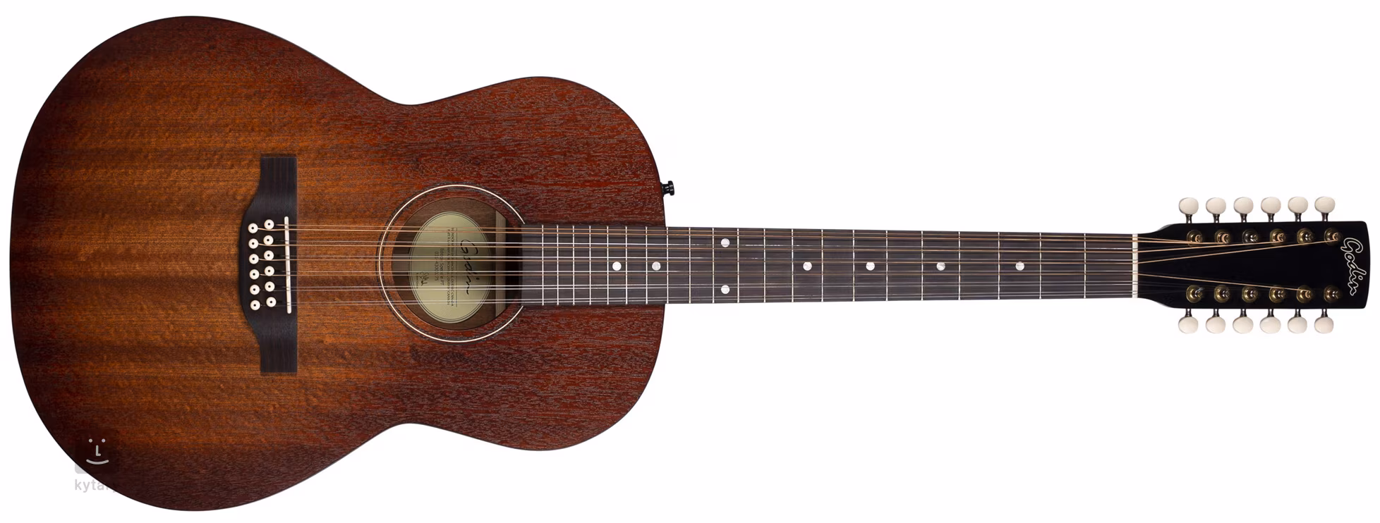 Dvanáctistrunná elektroakustická kytara Mahogany Folk 12 Rustic Burst kanadské značky Godin nabízí kompaktnější tělo velikosti “Folk” a krásně plný prostorový zvuk dvanáctistrunné akustické kytary, který je nedílnou součástí řady slavných nahrávek. Tělo z masivu mahagonu poskytuje nástroji vřelý zvuk. Kresbu mahagonu podtrhuje pololesklý finiš Rustic Burst. Ke krku ze stříbrolistého javoru je přilepen palisandrový hmatník osazený jednadvaceti pražci. Orientaci na hmatníku usnadňují polohové tečky.