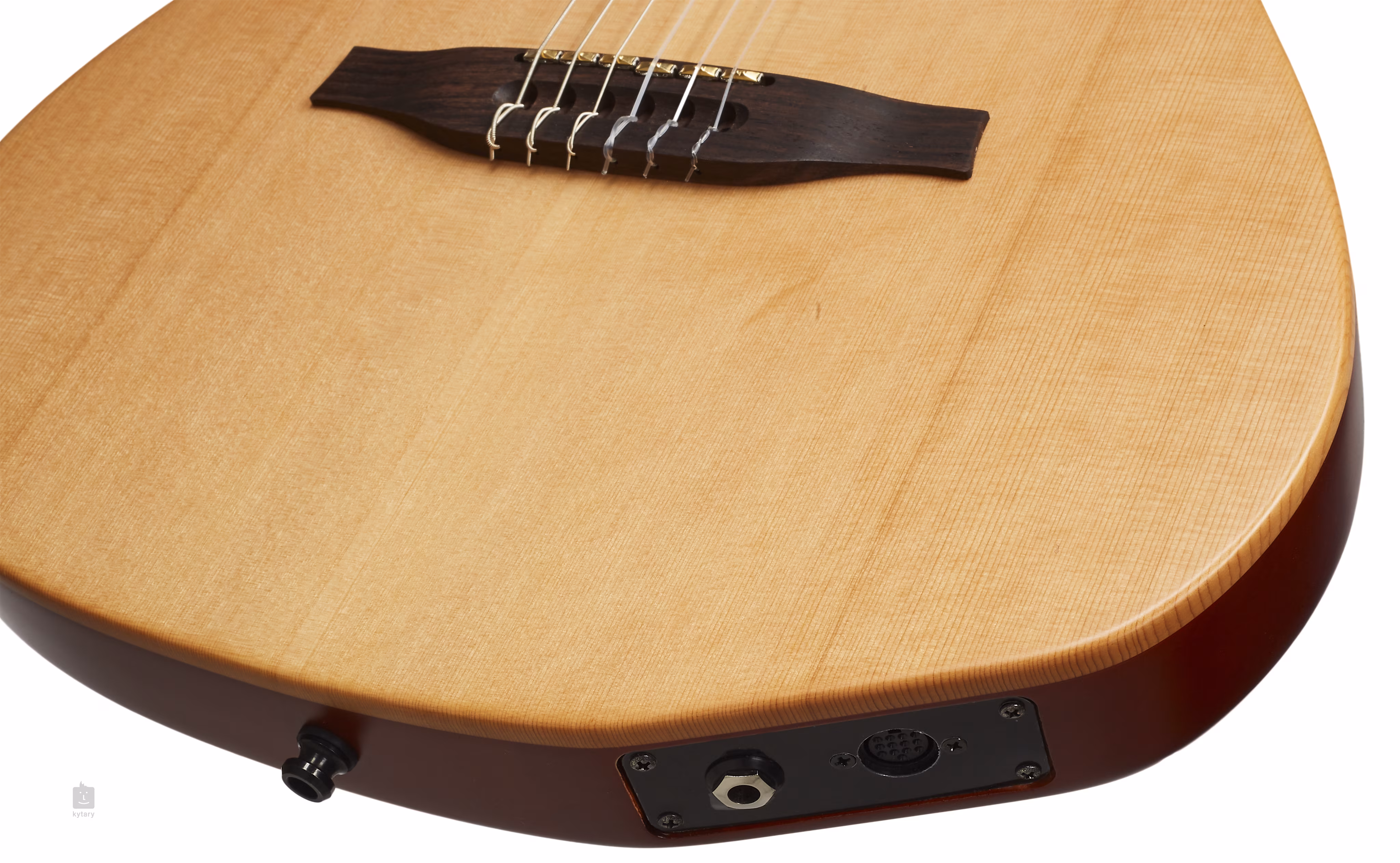 Nylonové struny kytary jsou uchyceny přes nultý pražec z Graphtech v klasických otevřených ladících mechanikách s převodovým poměrem 16:1 a kobylce z richlite. Nástroj je dodáván v obalu (gig bag).