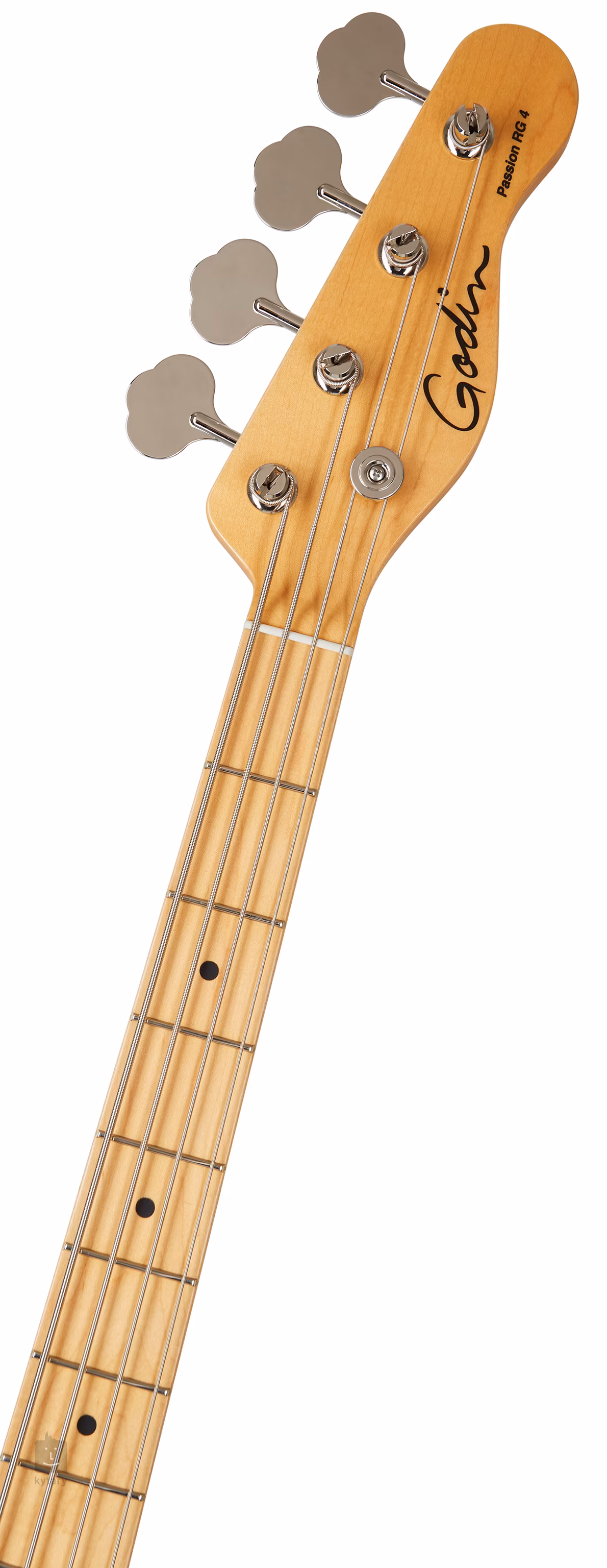 Baskytara Passion představuje vrchol dlouholeté práce Roberta Godina, zakladatele a majitele značky Godin. Koncepčně vychází z modelu Shifter, byly však použity ty nejkvalitnější materiály a výběrová dřeva, která byla ručně zpracována přímo v kanadském Quebecu. Ergonomické tělo je vyrobeno z červeného cedru, který byl komorován pro dosažení co nejlepší rezonance, a doplňuje jej top z bahenního jasanu. Šroubovaný krk s dvaceti pražci je zhotoven z prvotřídního kanadského javoru.