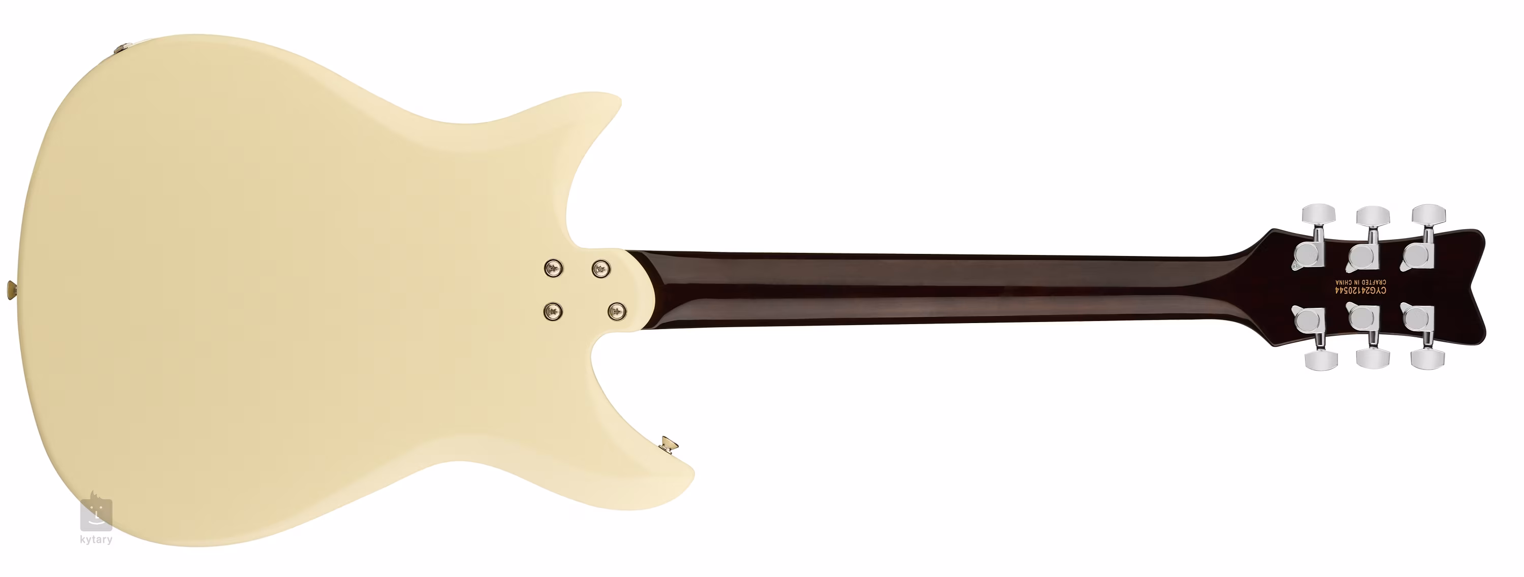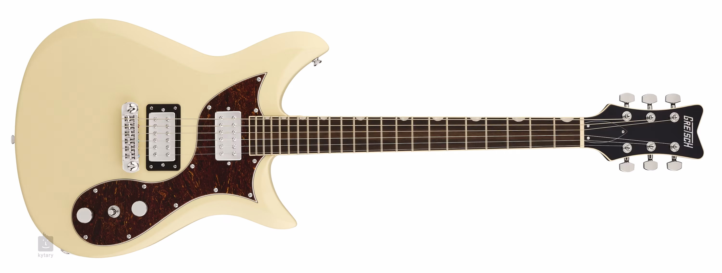 Tělo elektrické kytary Electromatic CVT Double-Cut with Wraparound LRL Vintage White je zhotoveno z mahagonu. K přišroubovanému mahagonovému krku s pohodlným a rychlým Performance “C” profilem je přilepen hmatník z fíkovníku osazený dvaadvaceti pražci velikosti Medium Jumbo. Orientaci na hmatníku usnadňují offset polohové značky z imitace perleti (Neo-Classic Thumbnail).