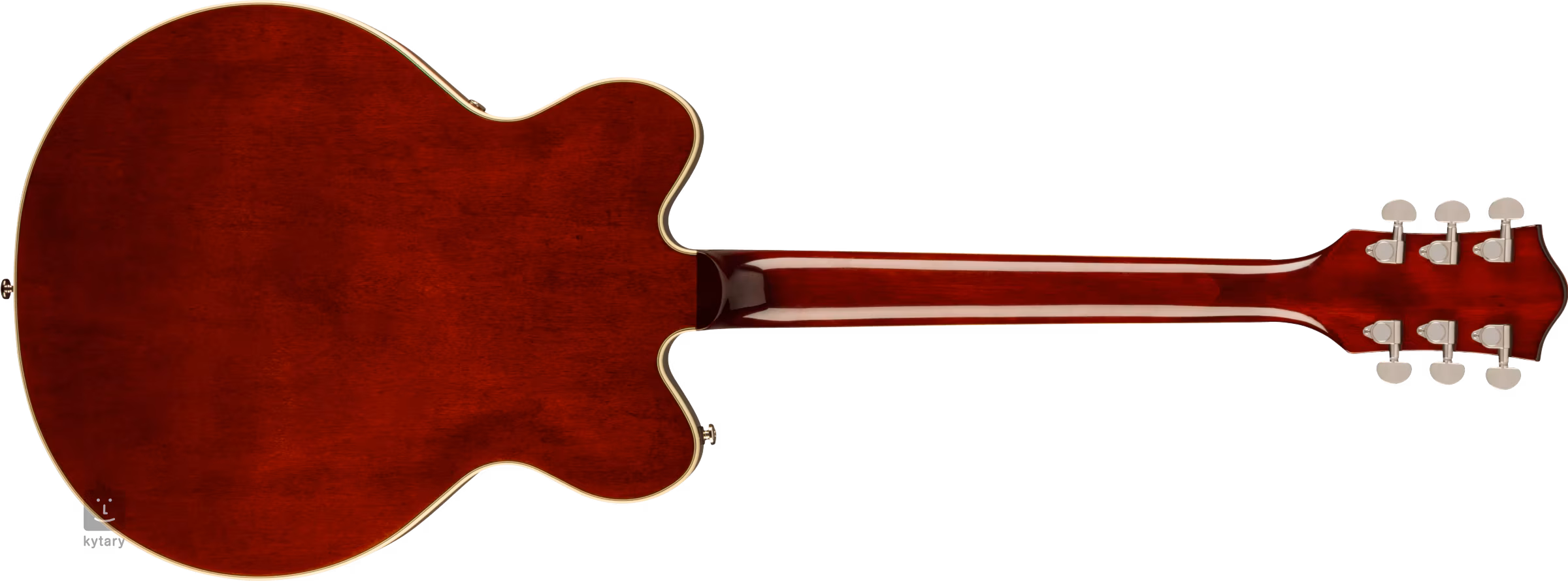 Struny jsou ukotveny přes nultý pražec z kosti ve firemních die-cast mechanikách a přes kobylku Adjusto-Matic v licenčním tremolu Bigsby B70. Klasický oku lahodící design kytar Gretsch podtrhuje řada stylových prvků - od klenuté konstrukce těla s F otvory, elegantní lemovky s jemným nádechem patiny (Aged White), "radio" style potenciometrů, niklového hardware po třívrstvý pickguard z imitace želvoviny se zlatým logem Gretsch.