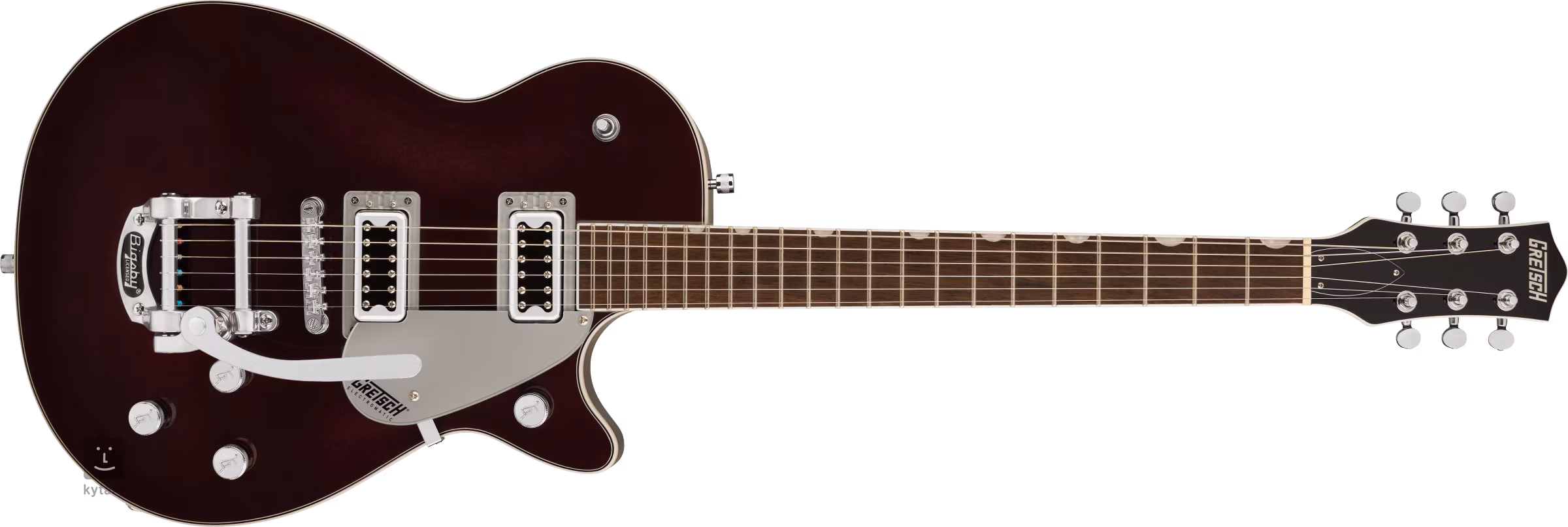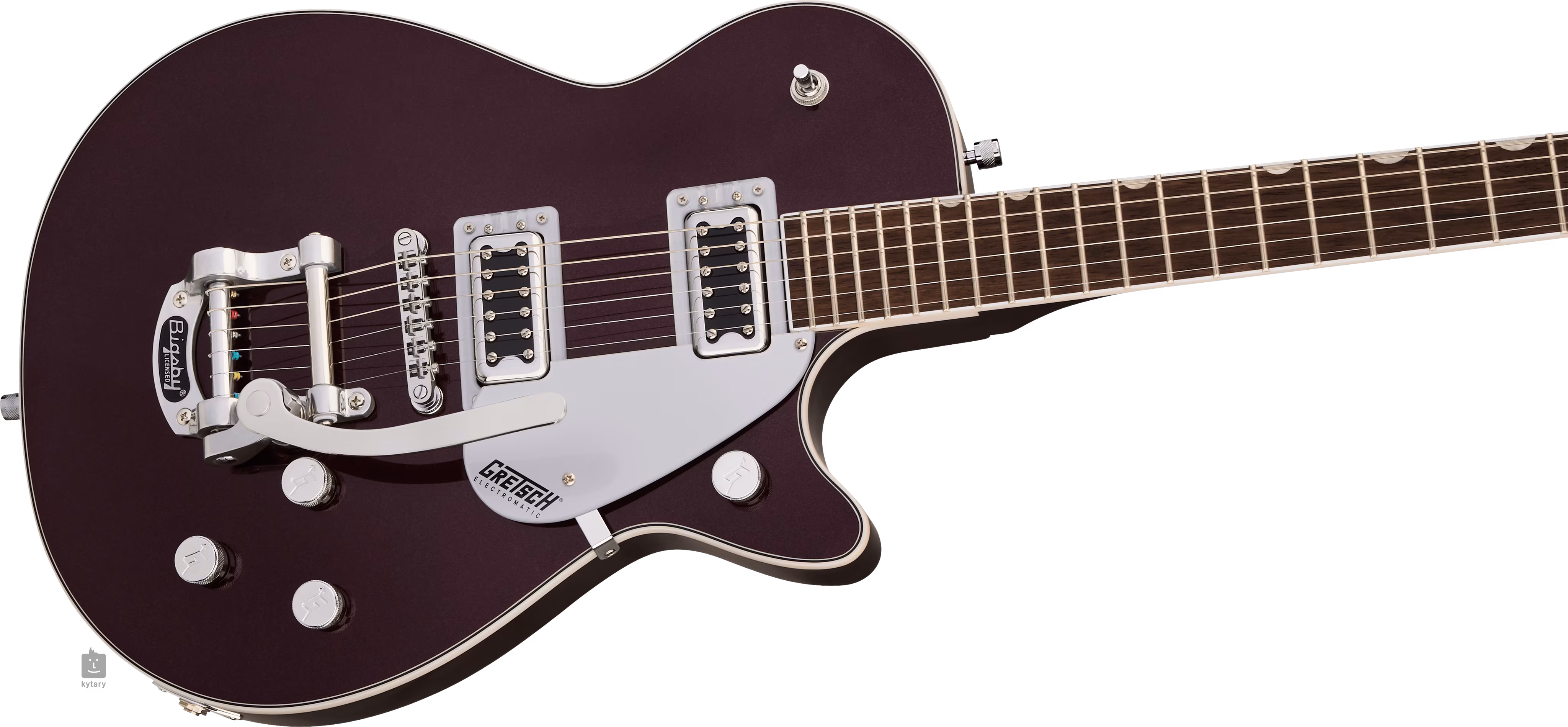 Elektrické kytary Gretsch Duo Jet v single-cut designu utváří od roku 1953 až do dnešních dní zvukový profil řady slavných kytaristů a hudebních těles. Model G5230T Electromatic Jet FT Single-Cut with Bigsby LRL Dark Cherry Metallic ze základní řady Electromatic nabízí design, zvuk a feel kytar Gretsch Jet za cenu dostupnou širokému okruhu zájemců.