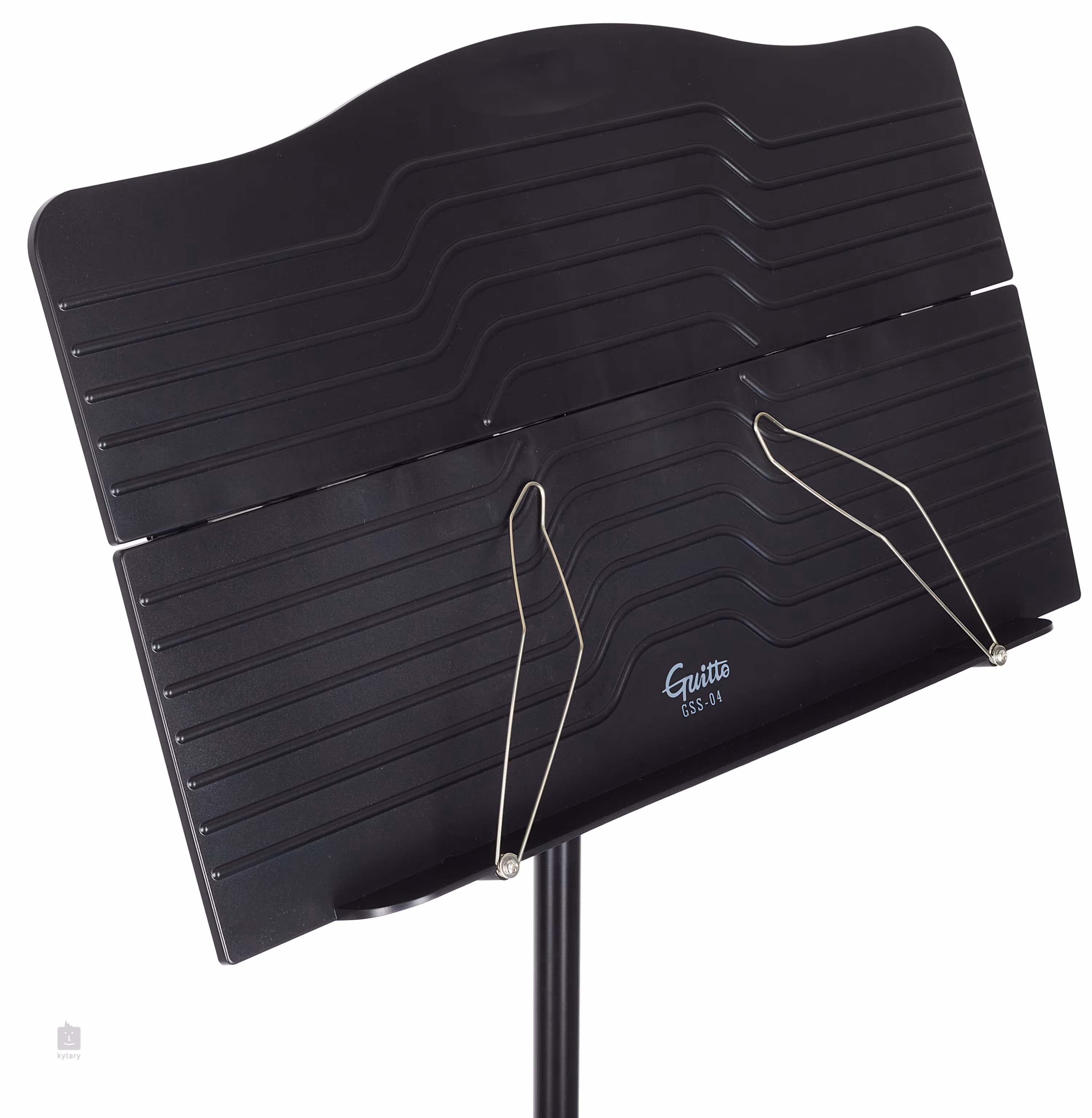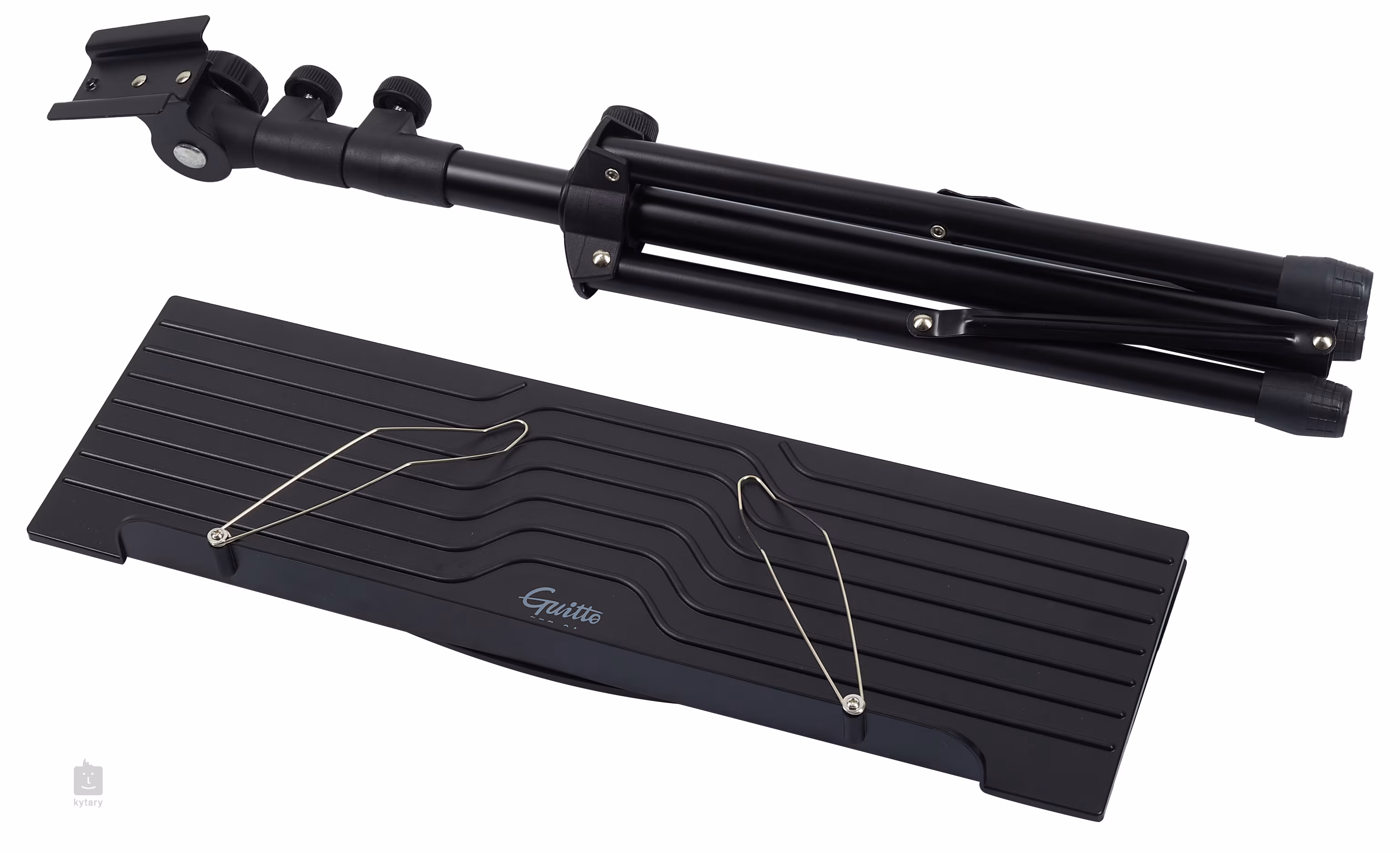 Univerzální notový stojan je vhodný pro hru v sedě, nebo ve stoje. Zároveň najde uplatnění při domácím cvičení, live performance nebo ve studiu. Stojan se skládá z robustní ocelové trojnožky, na kterou je připevněn ergonomický držák not z odolného polyamidu o rozměrech 45 x 27 cm. Skládací konstrukce vám umožní tři výškové nastavení, snadný a pohodlný transport. Flexibilní nastavení zase několik možností připevnění not, tabletů nebo mobilních zařízení.