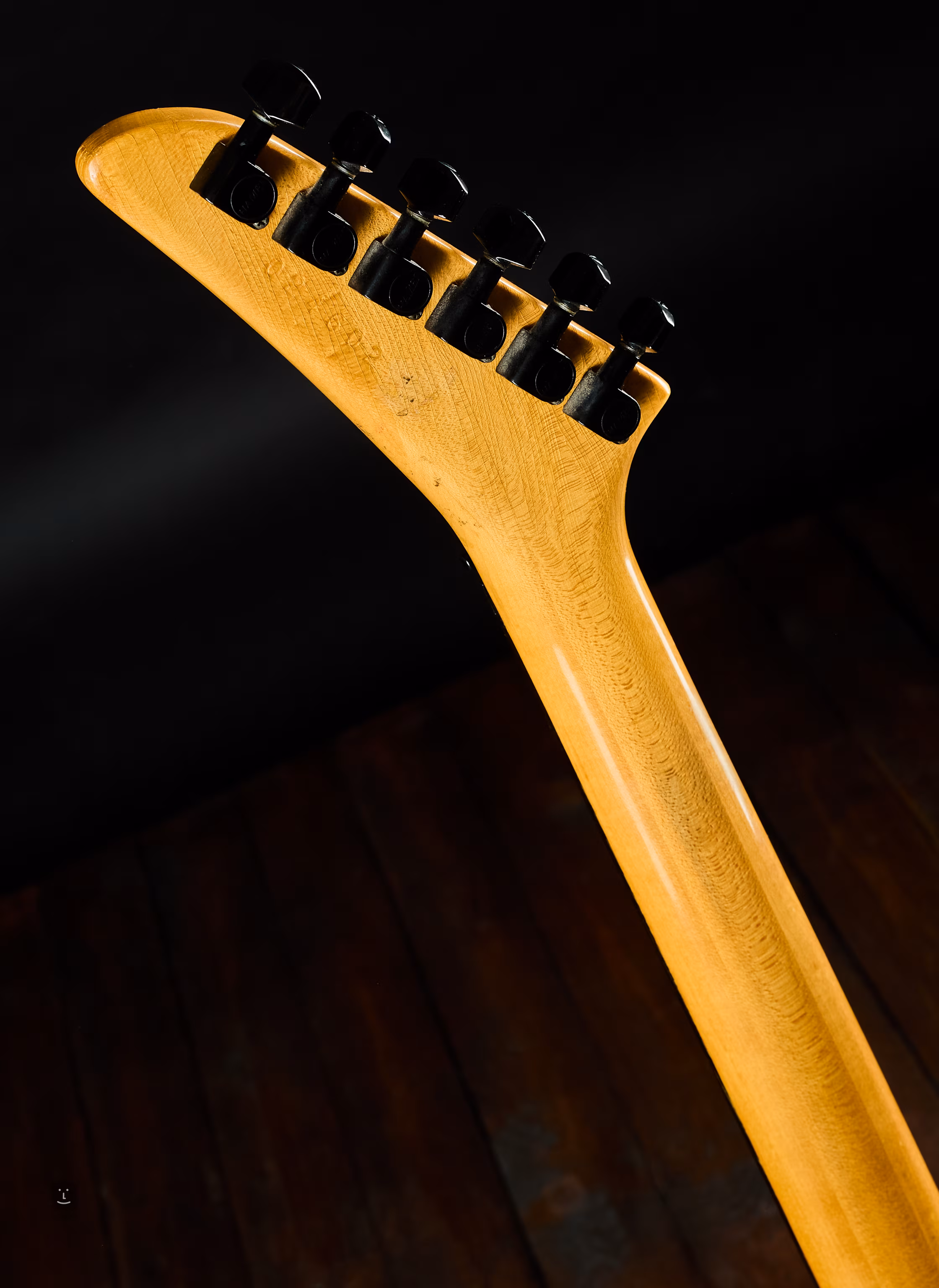 Tento exemplář má tělo ze 2 kusů fládrovaného javoru, krk je ze 3 kusů javoru a hmatník z ebenu. Kytara je vybavena 4 snímači, přičemž krkový tvoří humbucker a také obsahuje systém Sustainiac, který napájí dvojice 9V baterií, které jsou ukryté pod magnetickým krytem ze zadní strany těla. Na hlavici jsou umístěné zámky a instalované tremolo je kvalitní Shaller made in Germany vyrobený v liceni od Floyd Rose.