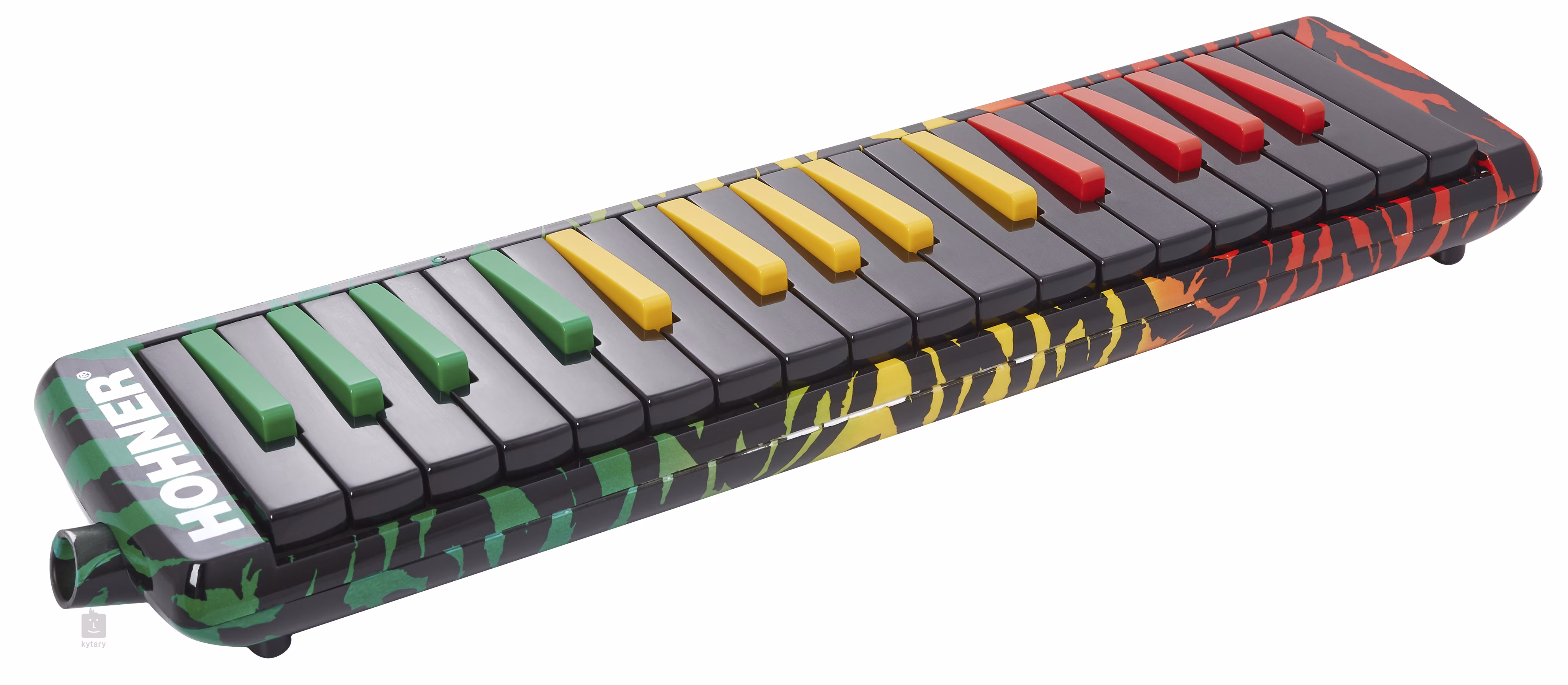 Stylová verze klávesových harmonik Hohner Airboard v barvách Rasta.