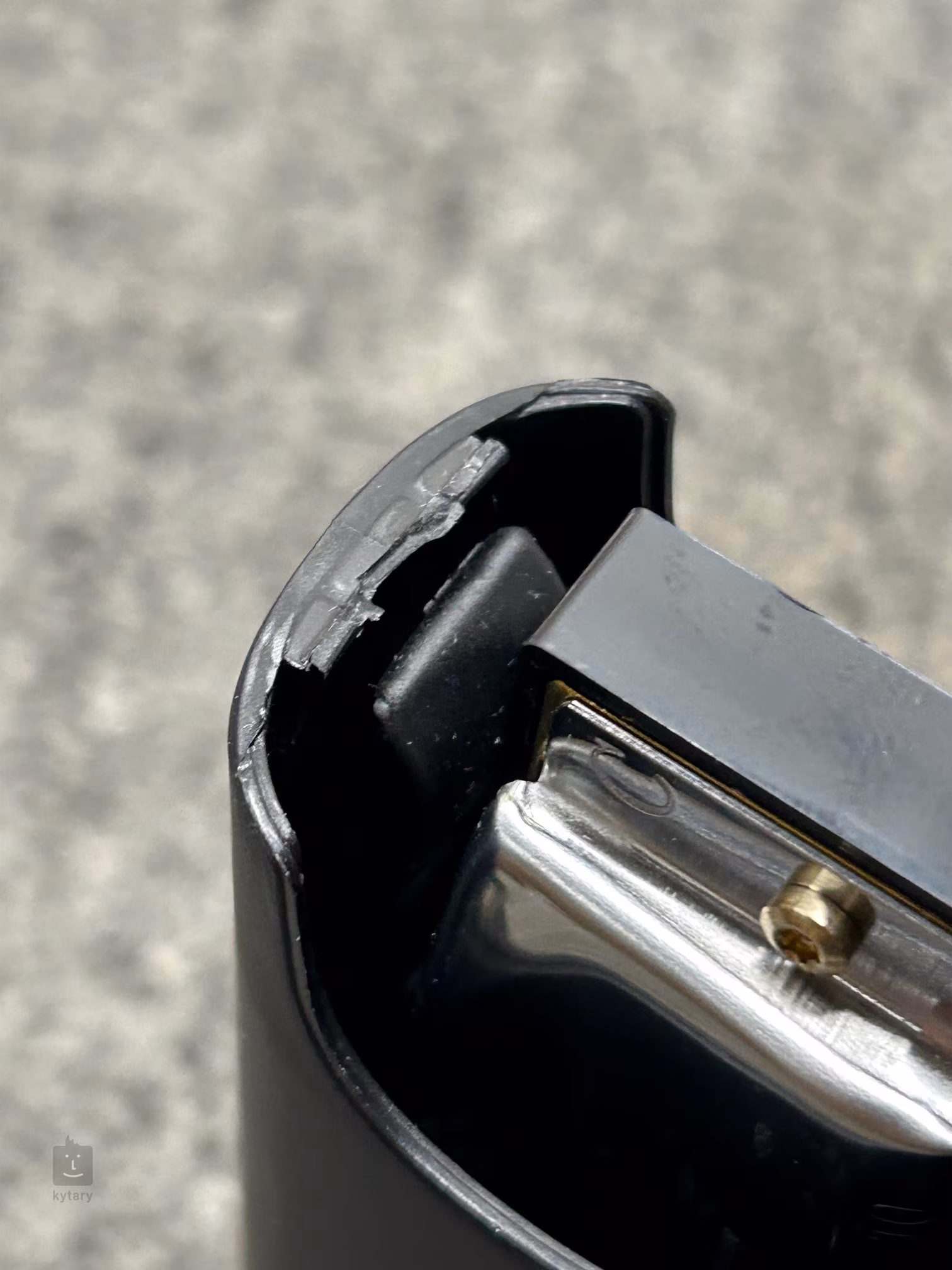 Poškozená pojistka na originálním pouzdru - nedrží zavřené (viz foto). Nástroj je v pořádku a plně funkční.