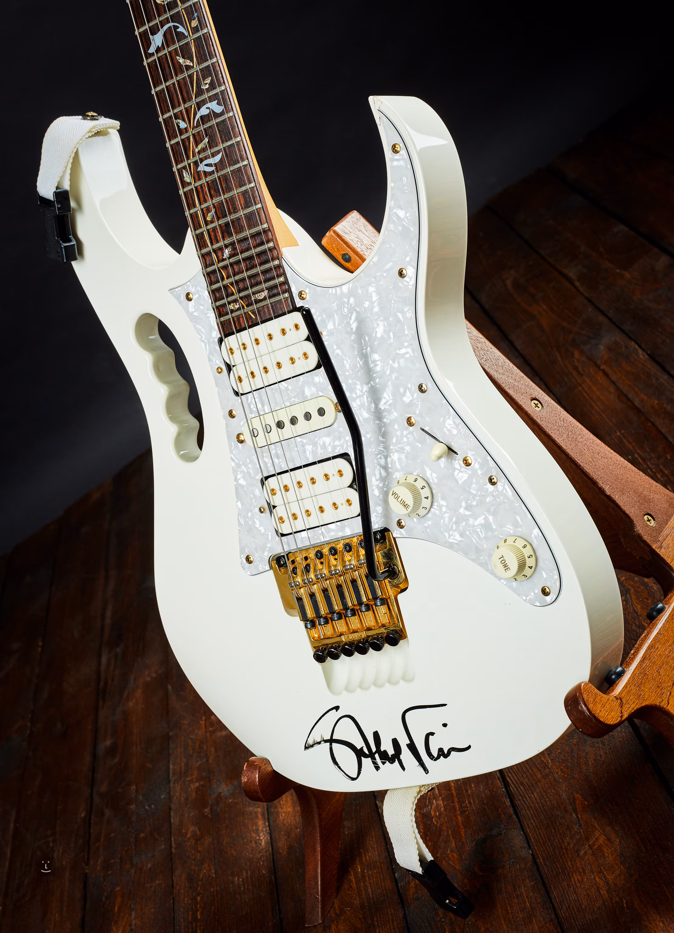 Podpisový model - Steve Vai - z japonské dílny J.Craft, pravděpodobně podepsaný přímo Stevem Vaiem (neověřeno, ale podpis vypadá věrohodně).