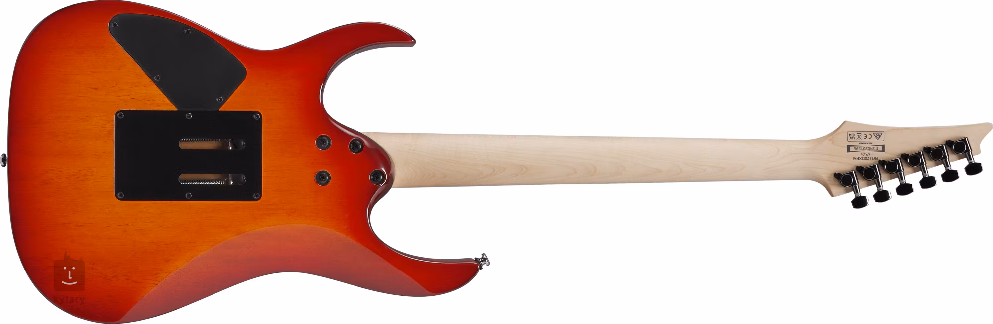 Tělo kytary RG470DXFM Cherry Sunburst ze dřeva meranti zdobí vrchní dýha z fládrovaného javoru a barevná úprava Cherry Sunburst. K přišroubovanému javorovému krku je přilepen hmatník ze dřeva jatoba osazený čtyřiadvaceti pražci velikosti Jumbo. Tenký a úzký profil krku „Wizard III“ nabízí ideální platformu pro rychlé hráče. Orientaci na hmatníku usnadňují polohové značky typu Sharktooth.