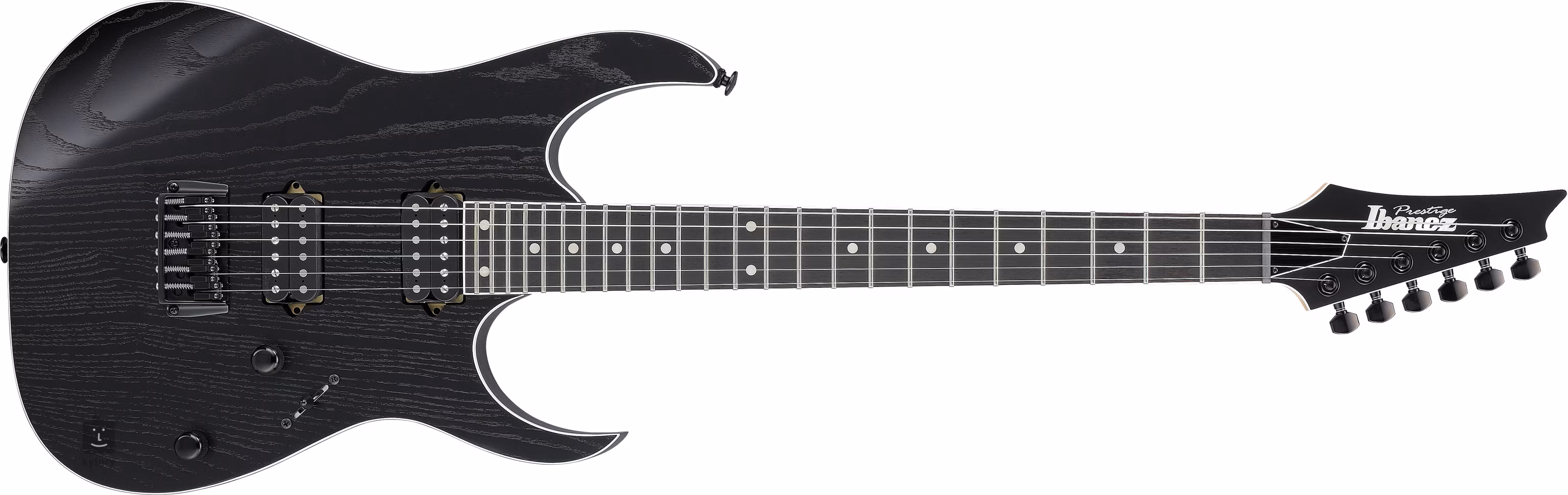 Tělo elektrické kytary RGR662AHBF-WK je zhotoveno z jasanu. Saténová barevná úprava Weathered Black nechává vyniknout kresbě jasanu. K rychlému krku z pěti kusů javoru a ořechu s profilem Super Wizard HP je přilepen palisandrový hmatník osazený čtyřiadvaceti pražci velikosti Jumbo. Jejich upravené hrany vám poskytnou větší herní komfort (Prestige fret edge treatment).