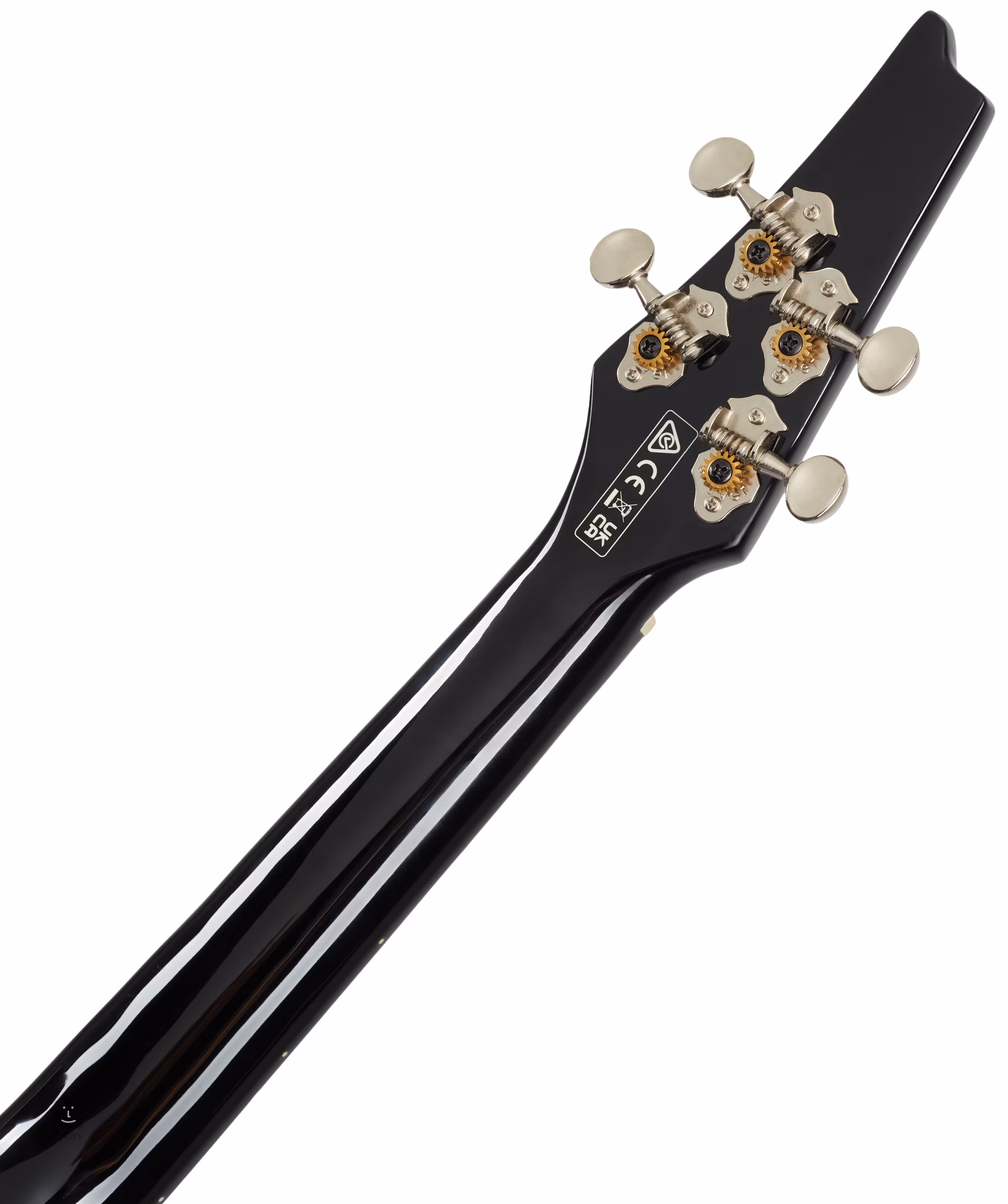 Vrstvený korpus nástroje je zhotoven z přední smrkové desky a zadní desky a lubů z okoumé. Ke krku z okoumé je přilepen hmatník ze dřeva purpleheart/amaranth osazený dvaceti pražci. Struny jsou uchyceny v otevřených ladicích mechanikách značky Grover s chromovanými kolíčky a kobylce z purpleheart.