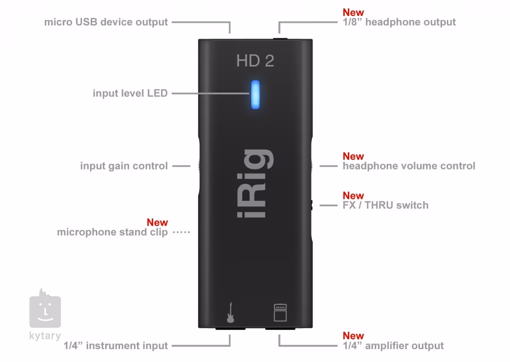 iRig HD 2 navazuje na oblíbený kytarový převodník iRig HD. Jedná se o kompaktní předzesilovač, který využijete na cestách, na koncertech a poslouží i k nahrávání. USB rozhraní pro počítač a mobilní zařízení v kombinaci s dodávaným zvukovým studiem AmpliTube dělá z tohoto přístroje výborného pomocníka pro vaši tvorbu.