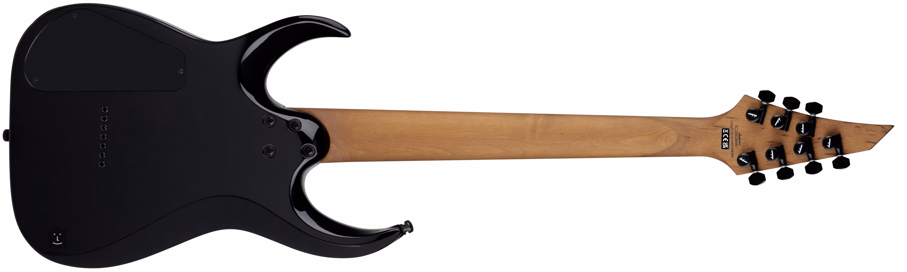 Stabilitu ladění a dobrou intonaci zajišťuje uchycení strun ve firemních uzamykatelných die-cast mechanikách a string-through kobylce Jackson HT7.