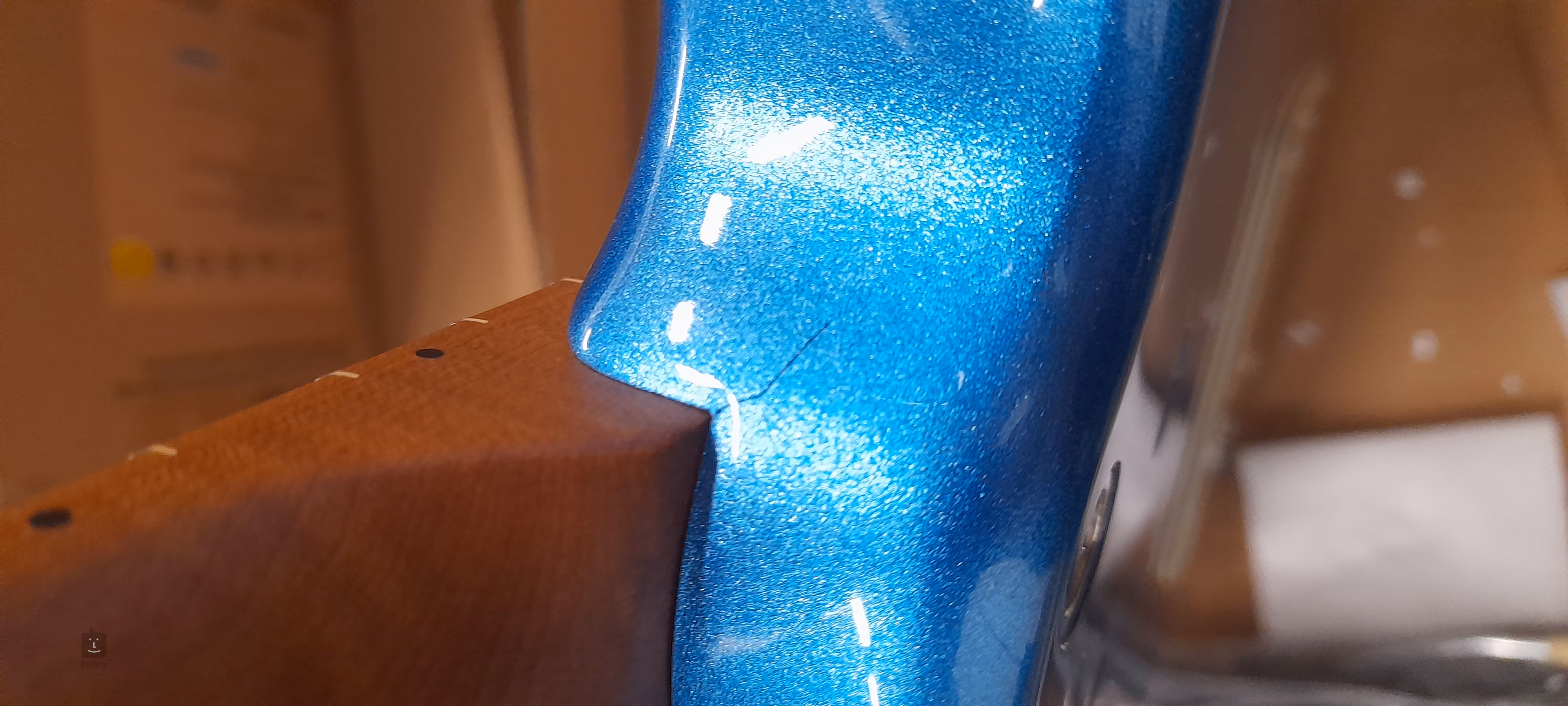 Lipové tělo nástroje kryje lesklý lak. Přišroubovaný krk z kanadského javoru a hmatník nástroje prošly před kompletací tepelnou úpravou, díky které je dřevo stabilnější a zároveň získá vzhled/auru již léty hraných krků/hmatníků.