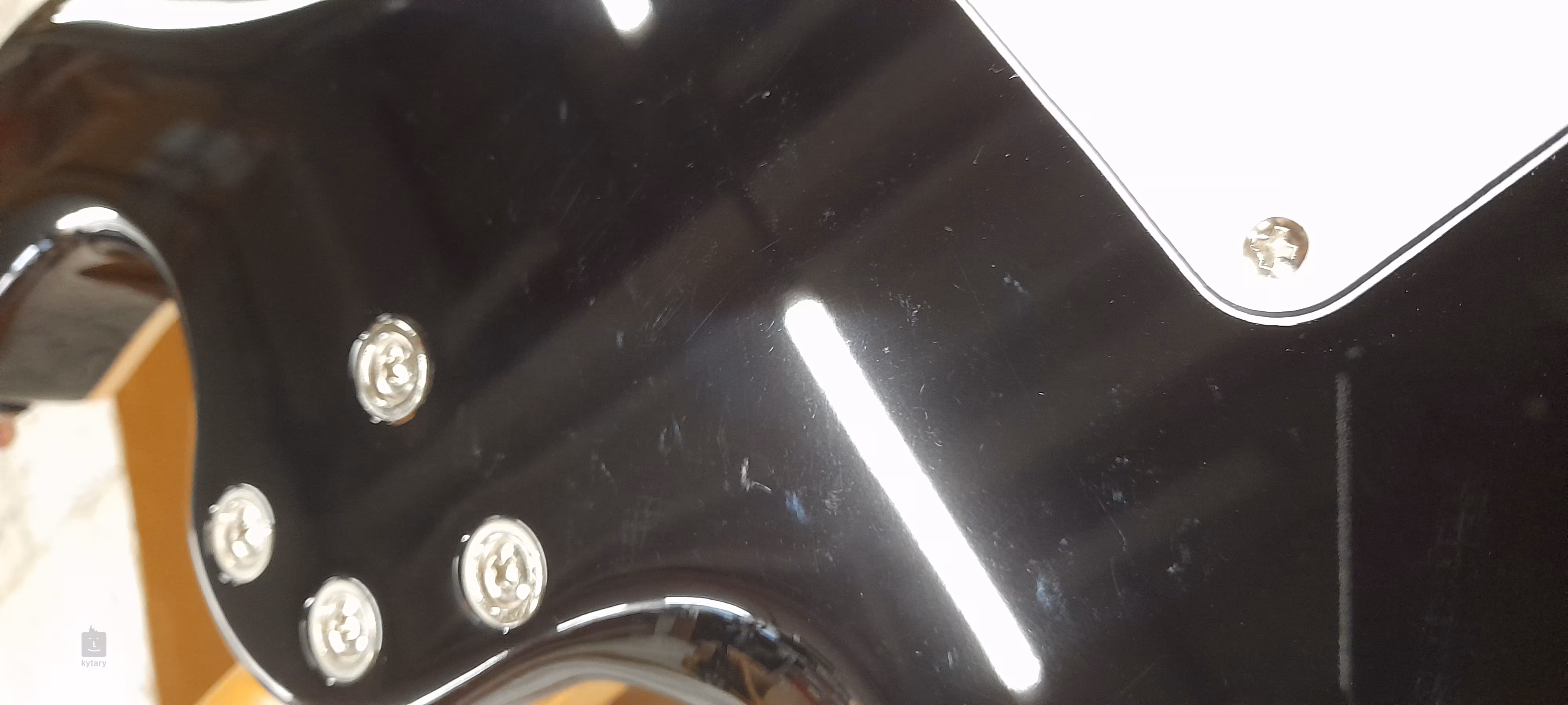 Kombinace kobylkového humbuckeru a dvou single-coil snímačů poskytuje kytaře poměrně širokou škálu zvuků vhodných pro řadu hudebních stylů. Charakter zvuku lze tvarovat pomocí potenciometrů hlasitosti, tónové clony a pětipolohového přepínače snímačů. Struny jsou přes nultý pražec z kosti ukotveny v chromovaných uzamykatelných ladicích mechanikách a synchronizovaném tremolu. Stylový vzhled kytary podtrhuje bílý pickguard.