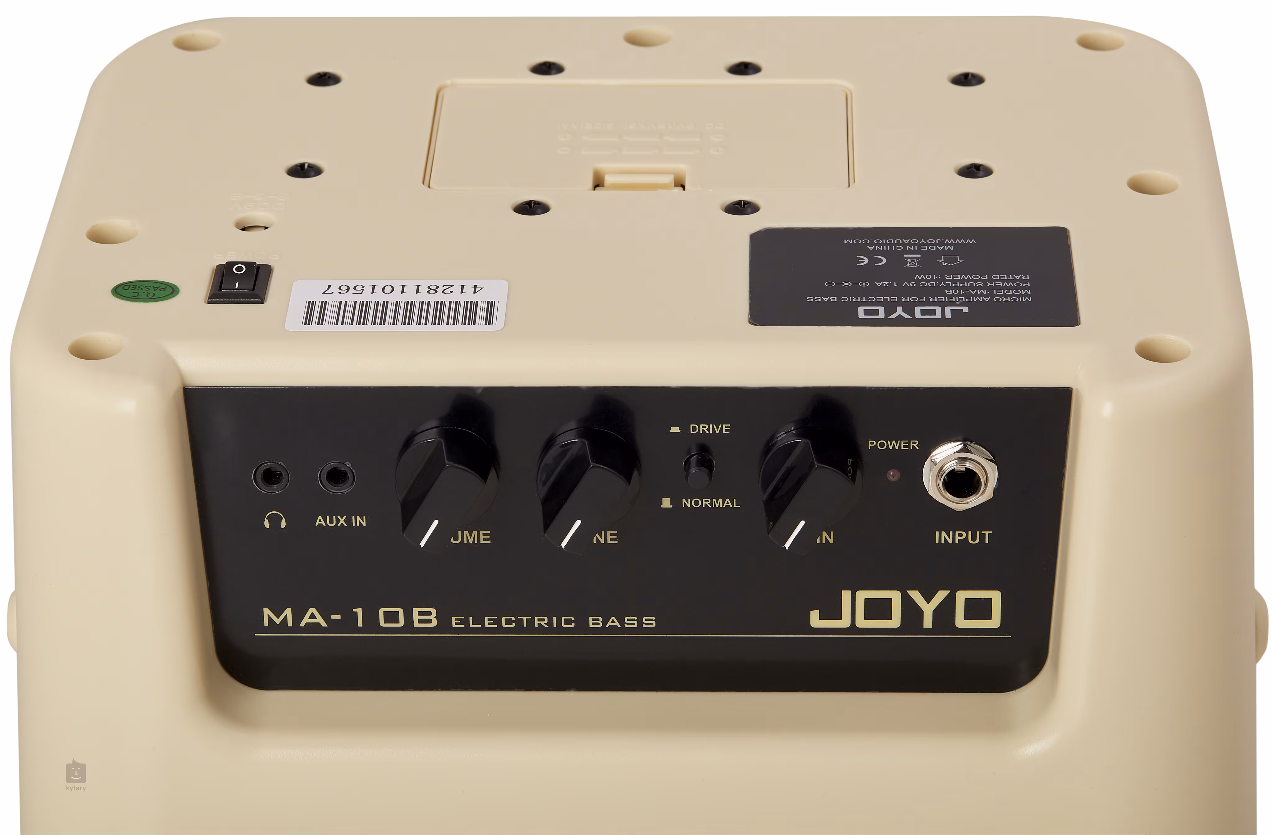 Tranzistorové mini kombo pro baskytaru značky Joyo z řady MA-10 představuje ideální aparát na cesty nebo na domácí cvičení. Nabízí výkon 10 wattů, dva kanály (Clean/OD), intuitivní ovládání a dvě užitečné funkce – Aux In vstup pro připojení externích audio/MP3 zařízení a výstup do sluchátek. Díky možnosti napájení bateriemi (6x AA) můžete přes kombo hrát i místech bez přívodu elektřiny, ke standardnímu napájení slouží přiložený 9V 1200mA adaptér. Postranní úchyty umožňují připevnit ke kombu popruh (není součástí balení).