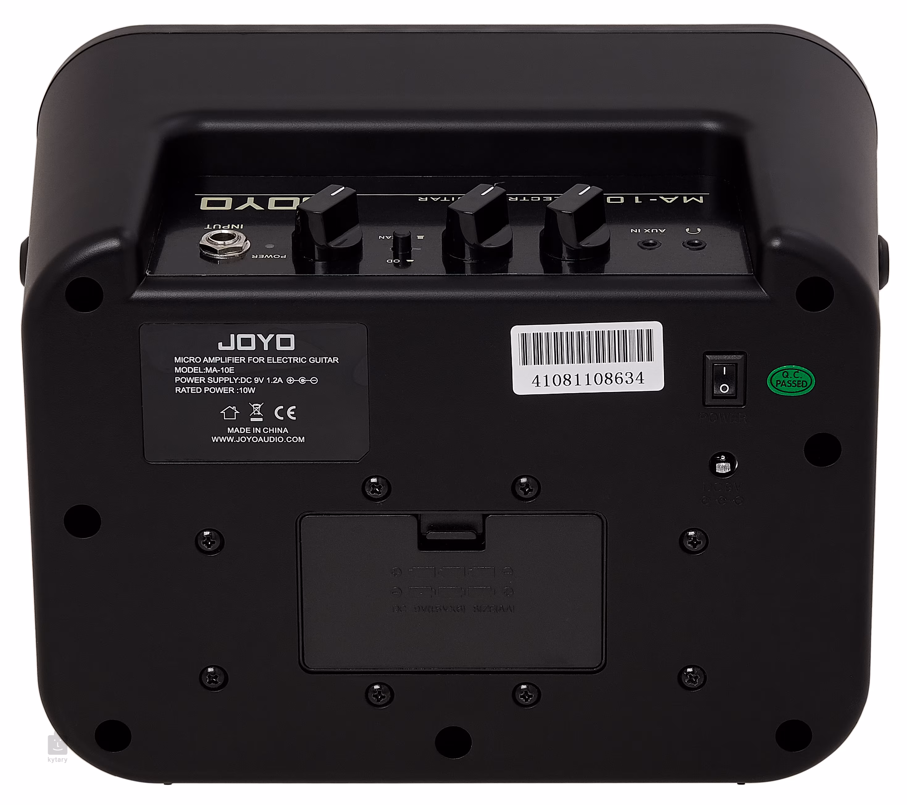 Tranzistorové mini kombo pro elektrickou kytaru značky Joyo z řady MA-10 představuje ideální aparát na cesty nebo na domácí cvičení. Nabízí výkon 10 wattů, dva kanály (Clean/OD) pro milovníky čistého i zkresleného kytarového zvuku, intuitivní ovládání a dvě užitečné funkce – Aux In vstup pro připojení externích audio/MP3 zařízení a výstup do sluchátek. Díky možnosti napájení bateriemi (6x AA) můžete přes kombo hrát i místech bez přívodu elektřiny, ke standardnímu napájení slouží přiložený 9V 1200mA adaptér. Postranní úchyty umožňují připevnit ke kombu popruh (není součástí balení).