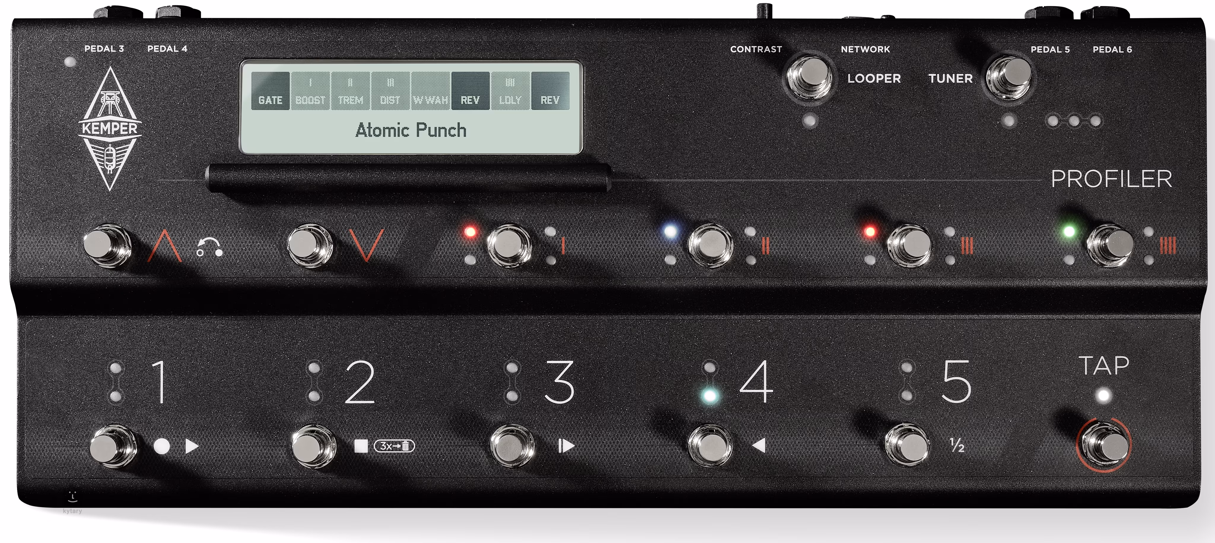 Tento model je vybaven speciálním footswitchem Remote MK2 (odkaz zde), který vám usnadní a urychlí ovládání. Zároveň vám umožní připojit externí expression pedály a využít dalších rozšířených funkcí – ovládejte Wah, Volume nebo funkci Morph pomocí externích pedálů a užijte si fluidní a bezproblémový workflow.