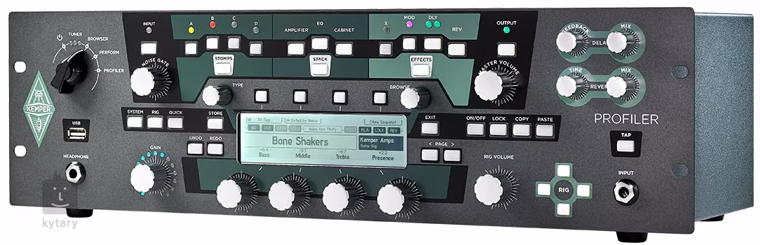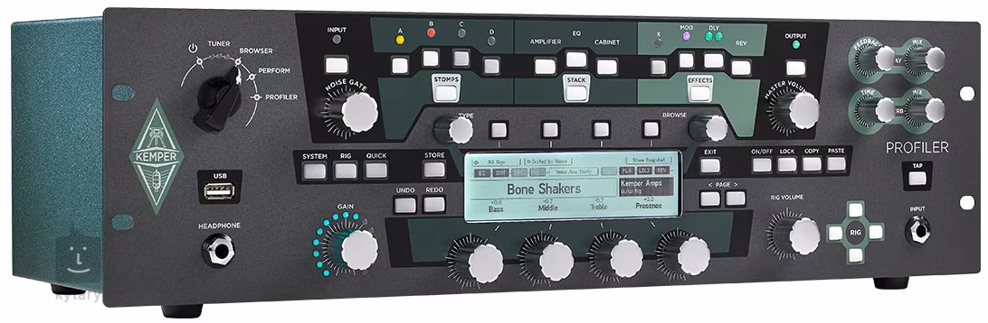 Kemper Profiler v sobě spojuje použití unikátní profilovací technologie se všemi funkcemi, na které jste zvyklí ze světa profesionálního zvukového modelingu a digitálních efektů. Uložte si do něj svůj vlastní zvuk a mějte ho vždy k dispozici, bez jakýchkoliv kompromisů. Nebo si vyberte ze stovky skvělých aparátů z celého světa. Při živém hraní, ve studiu, doma nebo kdekoliv je potřeba perfektní tón, tam se můžete na Kemper Profiler stoprocentně spolehnout. Jde o jeden z nejmodernějších a nejuniverzálnějších aparátů vůbec!